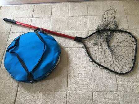 2) Подсак выдвижной (для лодки?). Ручка 90 см, голова 45 см. Не использовал (с берега — короткий).