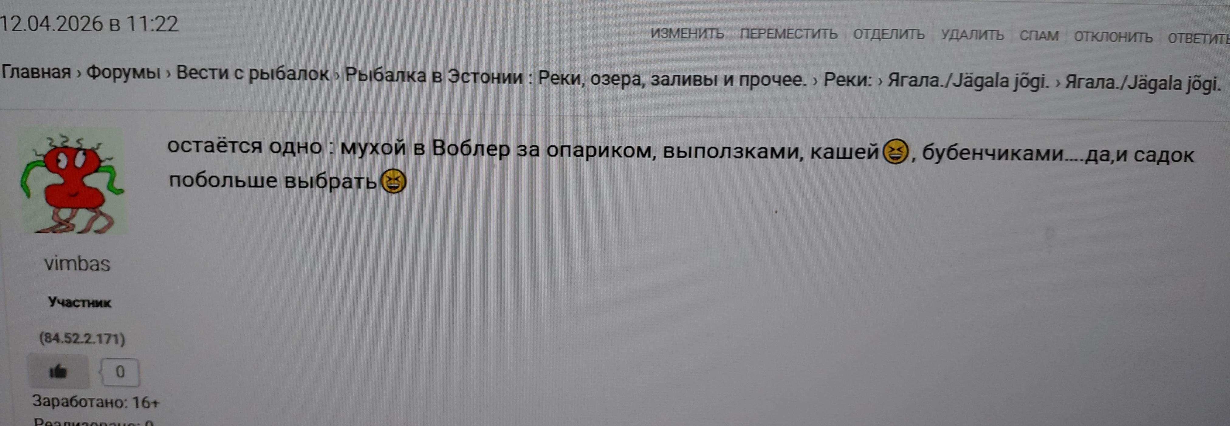 rybaling ответил(а) на тему Ягала./Jägala jõgi. в форуме Реки: 6 часов, 58 минут назад