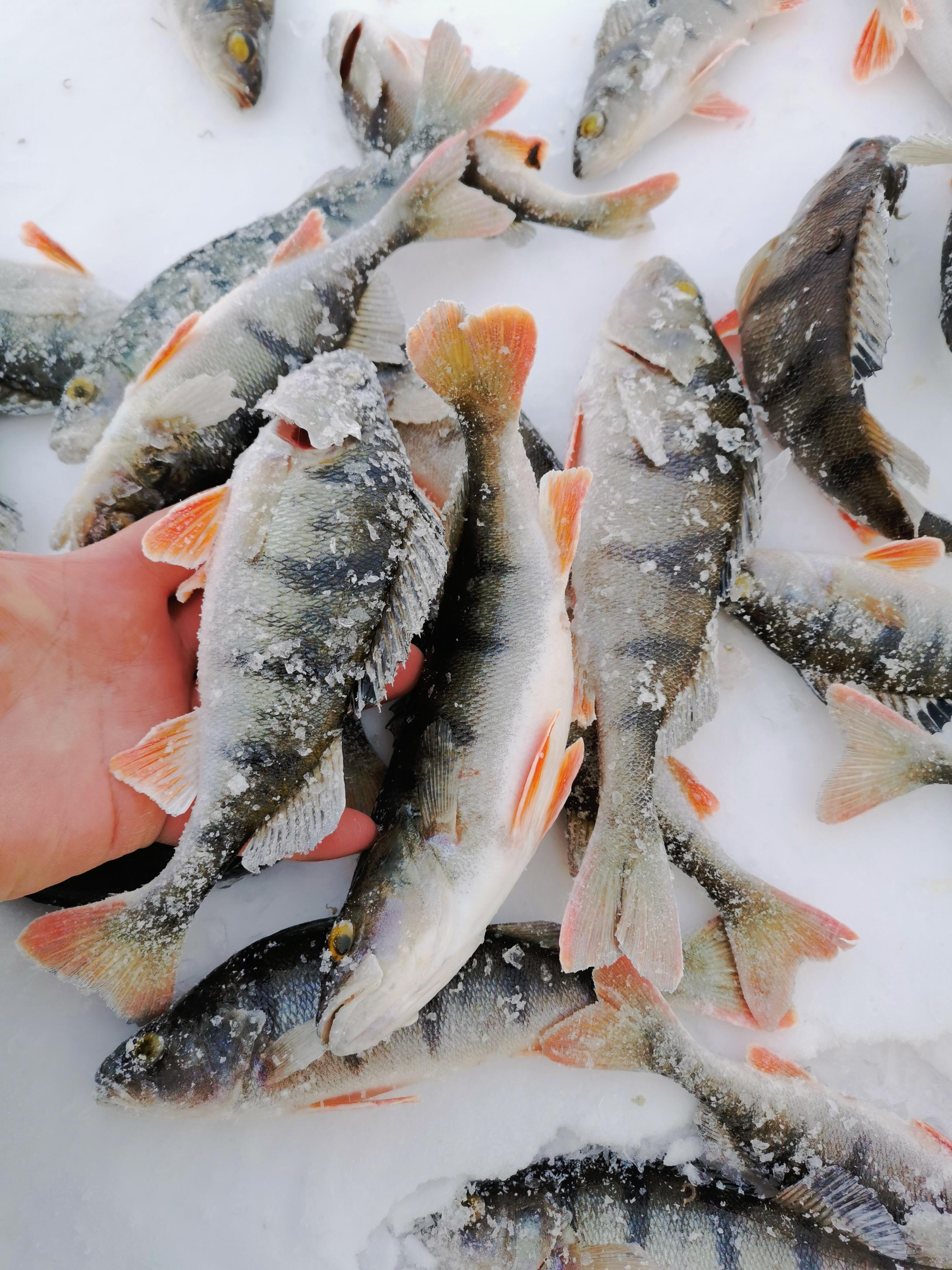 SlavaУчастникДалеко не пошли, прим 1,8км пробурил первую лунку. Опускаю секуху и сразу удар,ну думаю сейчас раздача и начнётся. Вытащил окунька гр 120 и на этом раздача кончилась. Пошли дальше и метров через двести снова бурюсь (Лёд под пол метра),делаю шесть лунок с шагом 10 метров. Посадил супругу пробовать на мотыля,а сам начал прбовать на секуху. С пустя минут двадцать супруга раскачала лунку и начала по немногу тягать полосатиков а на секуху не удара. Решил и я половить на мотыля,присел метрах в пять и потихоньку насщупал желание окуня (хотел возни возле дна,а на подьём не реагировал). Часо до 12 окунь клевал но с паузами, 2-3 поймаеш и перекур,потом опять 2-3 и пауза (окунь в пиявках).