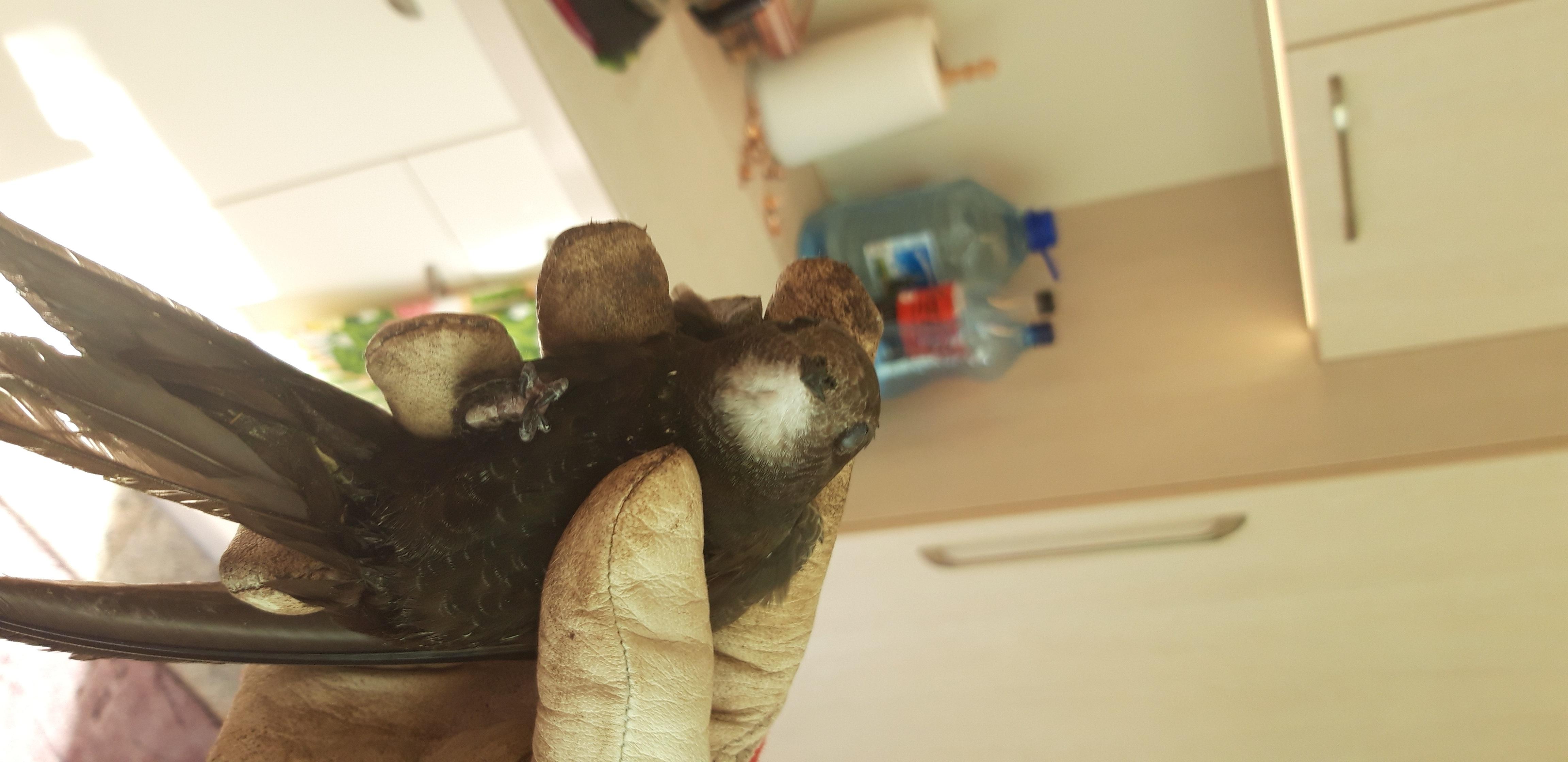 от туда.Это бедолага стриж. Представляете залетел в отверстие на высоте 7 метров и жил над плитой два дня