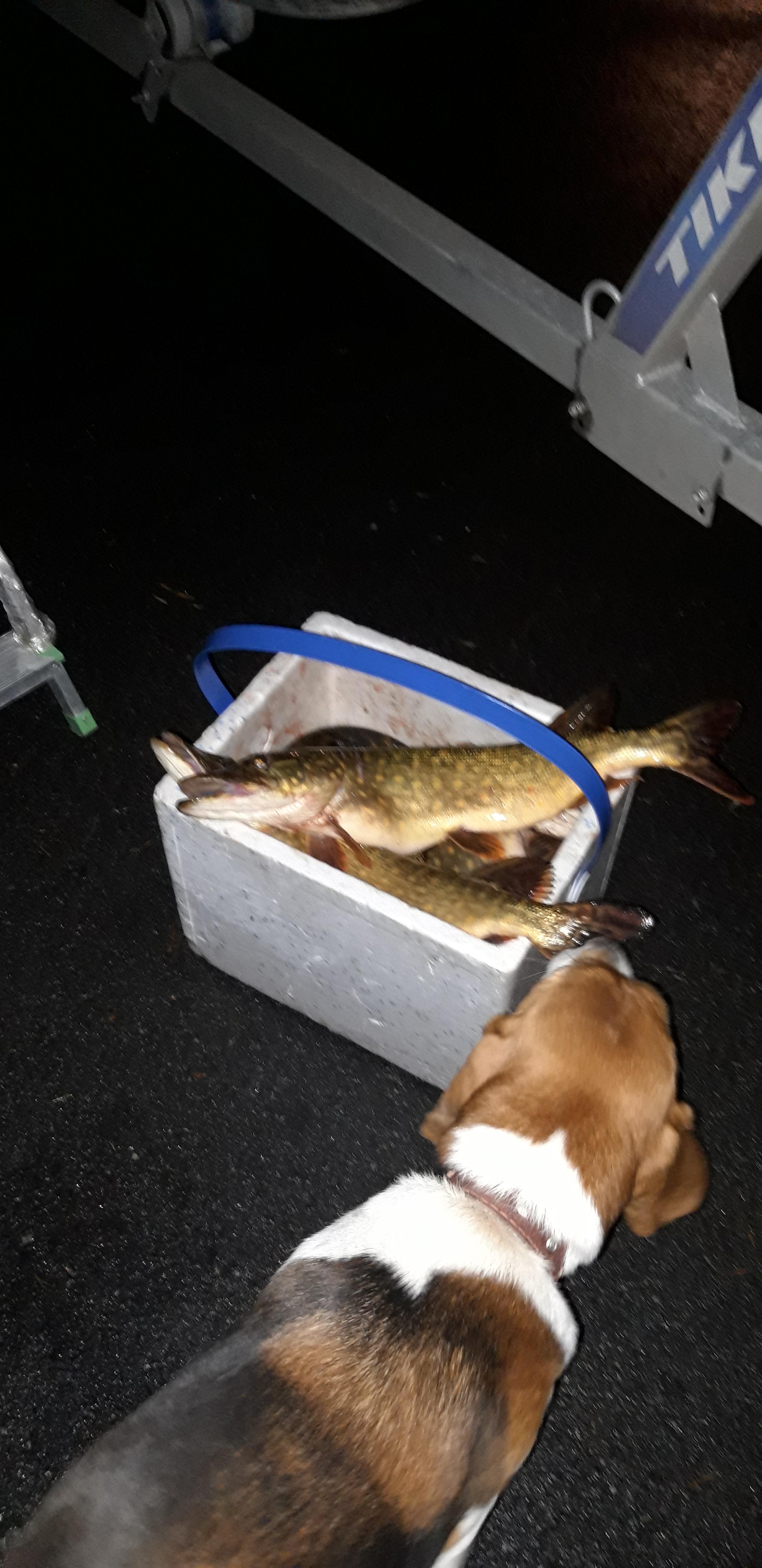 Да и песик оценил, успел хвост щучий отгрызть пока дома выгружались.
