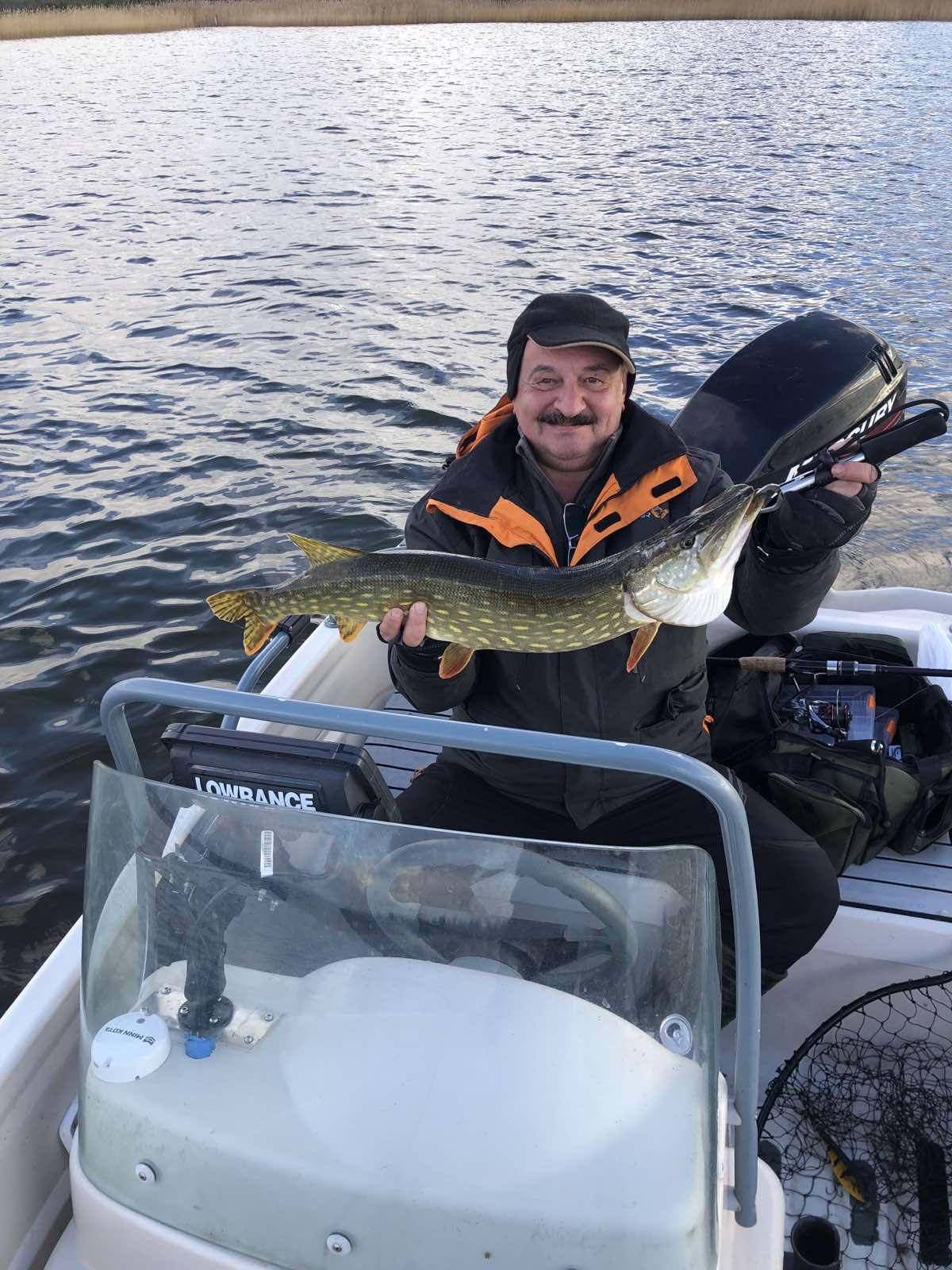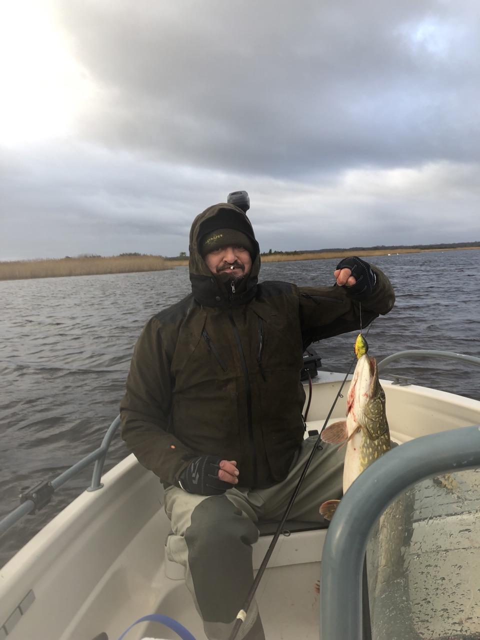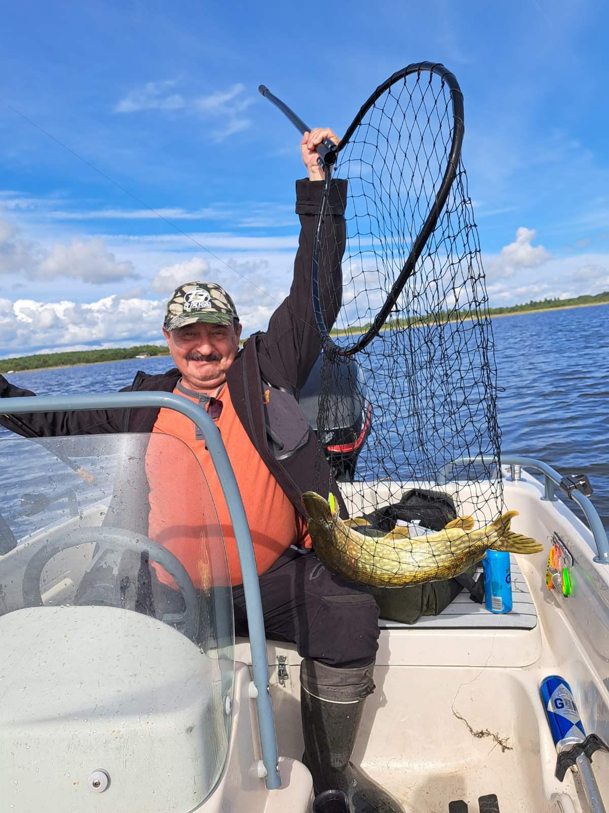 и вообщем все ,щупак закрыл рот в 12 часов и на все наши усилия отвечал ленивыми ударами, проходами за блесной и постоянными сходами у лодки, так как тупо багрился за рыло .