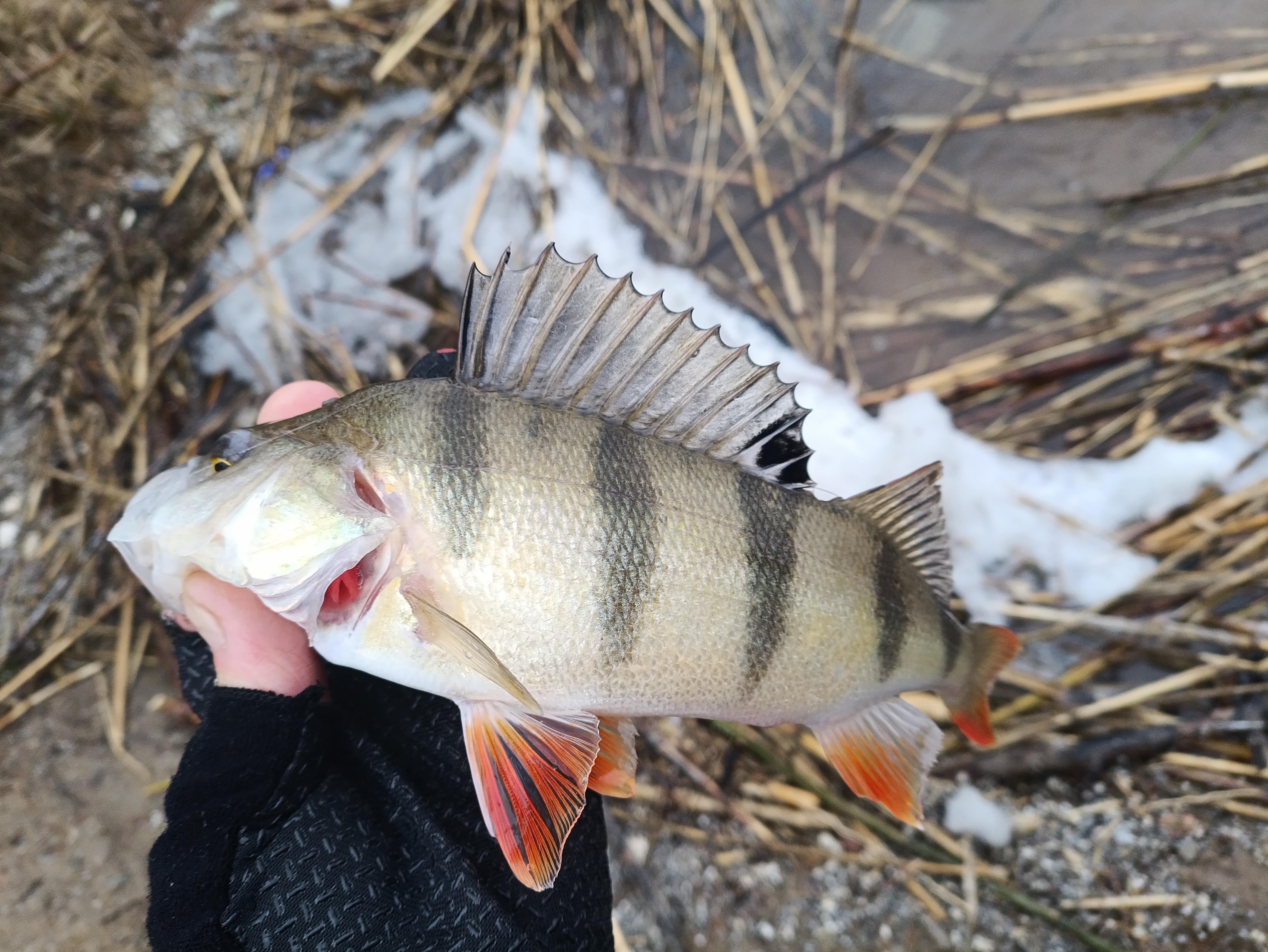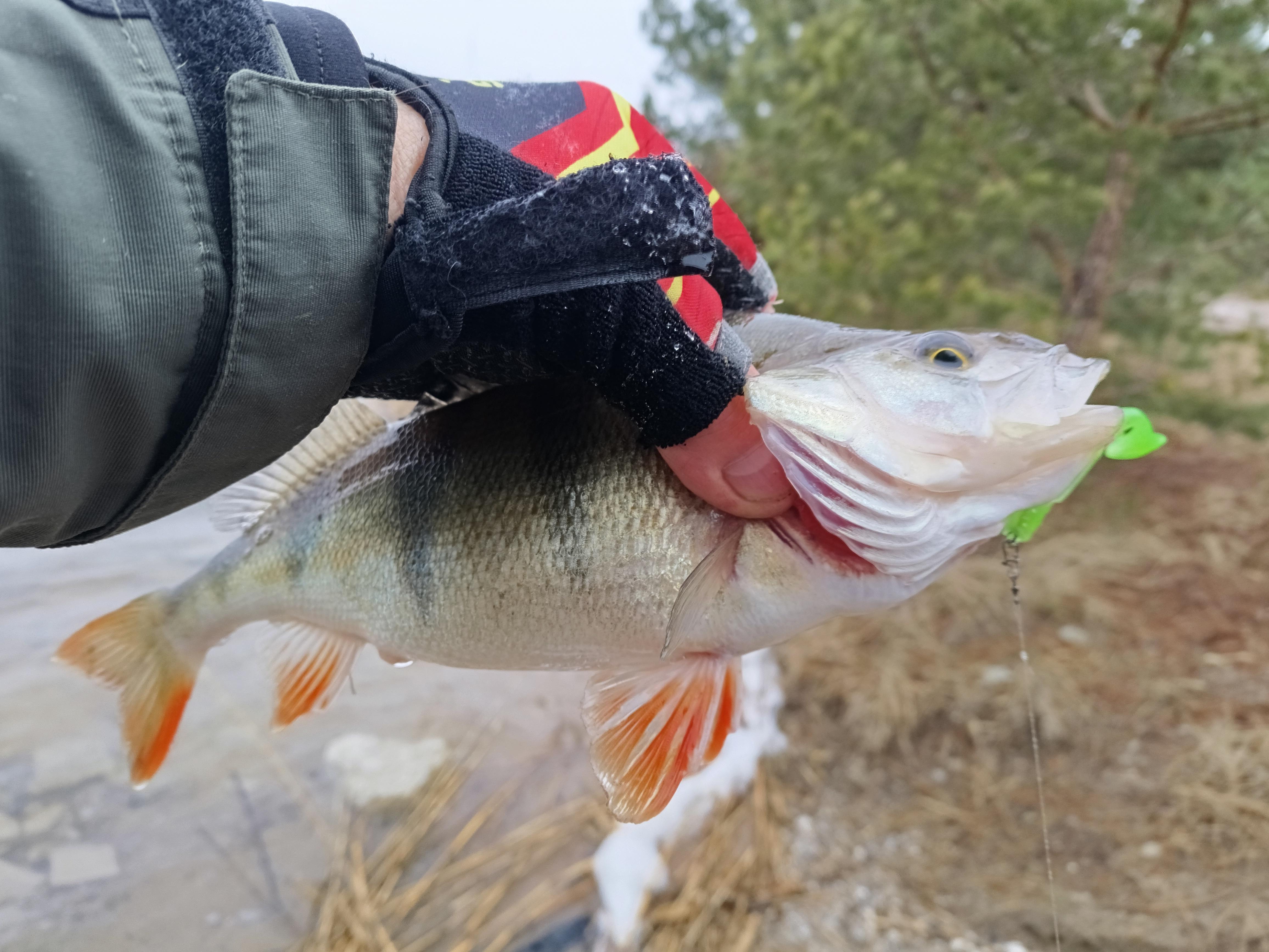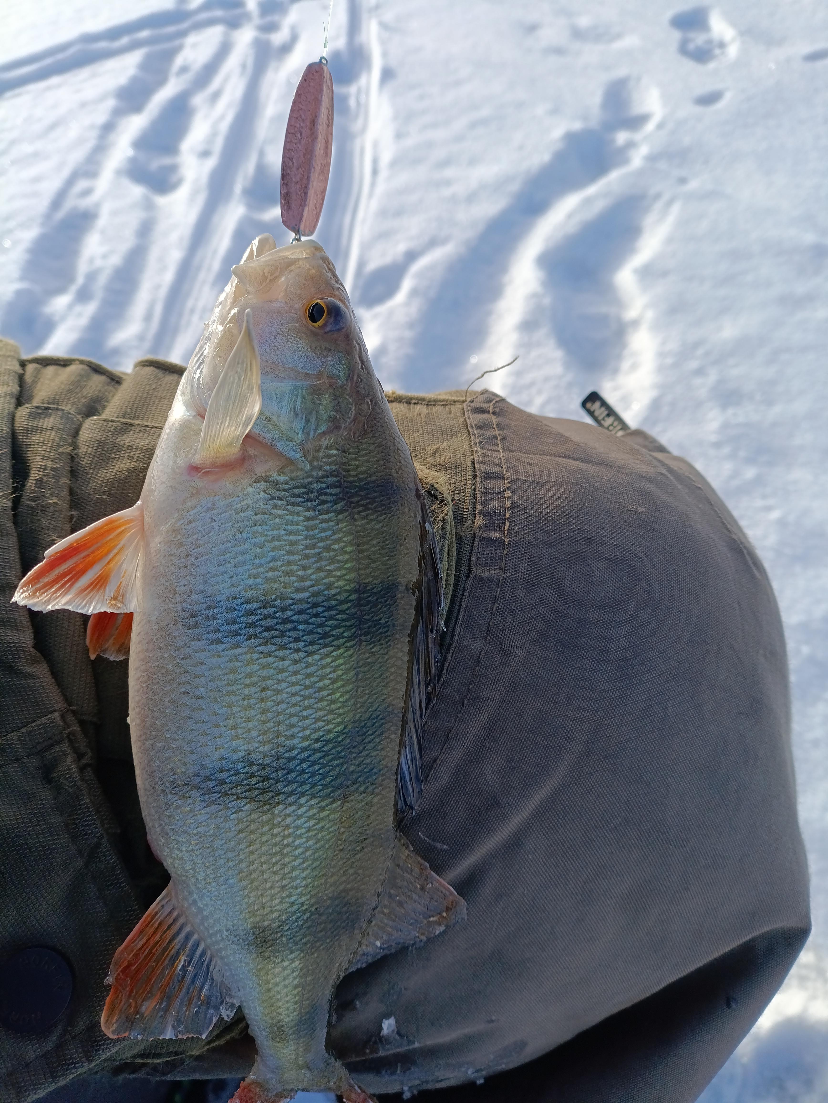 А вчера это выглядело так. И второй окунь «отклеились» тоже, но уже на льду. Дома проверил глазомер и не ошибся. Ровно 300 гр.