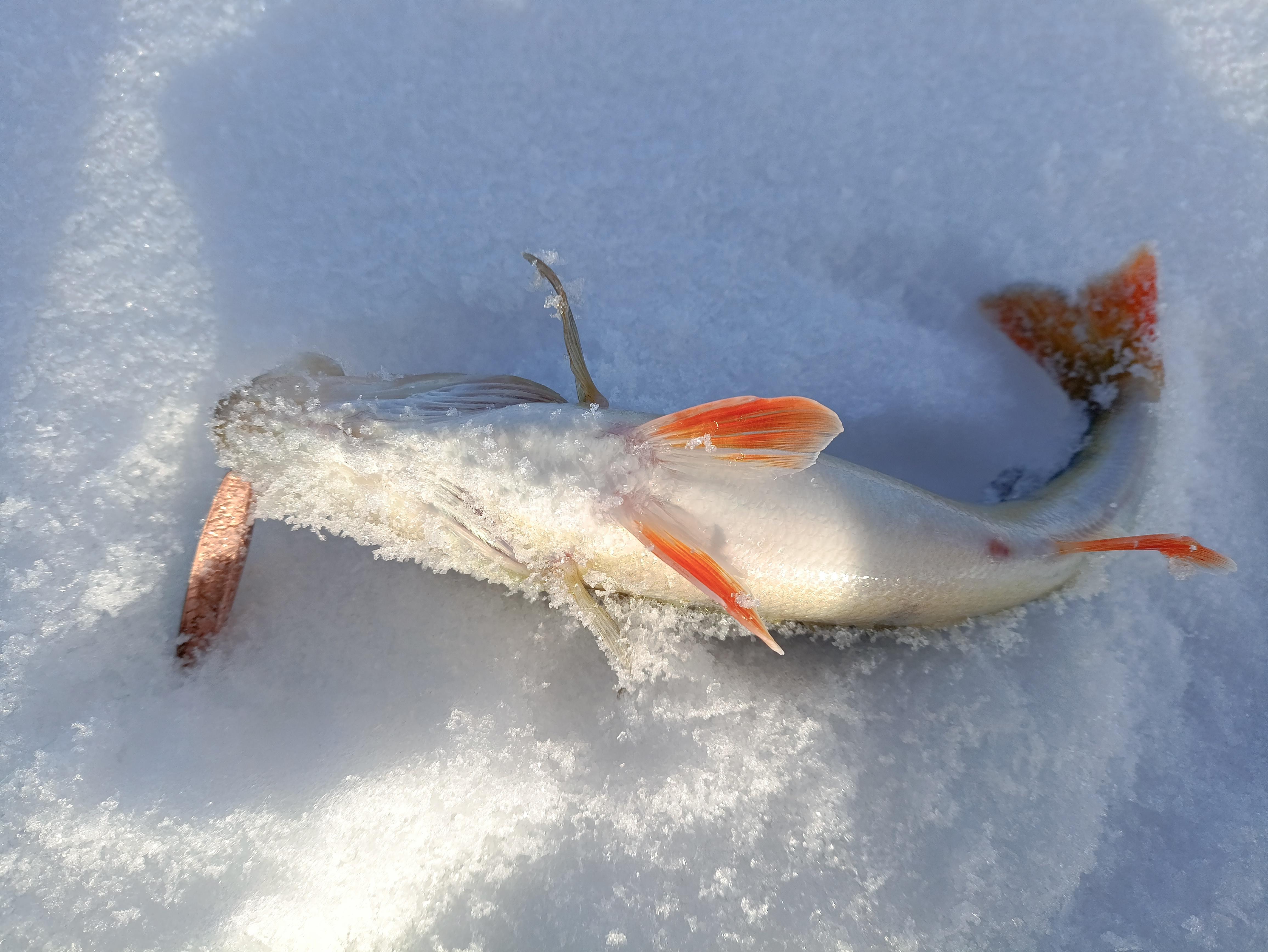 У напарника ноль, на льду был ещё один знакомый — один живчик словился. Пару машин уже часов в 11 карьер покинули. Мы промучались до 13 часов.