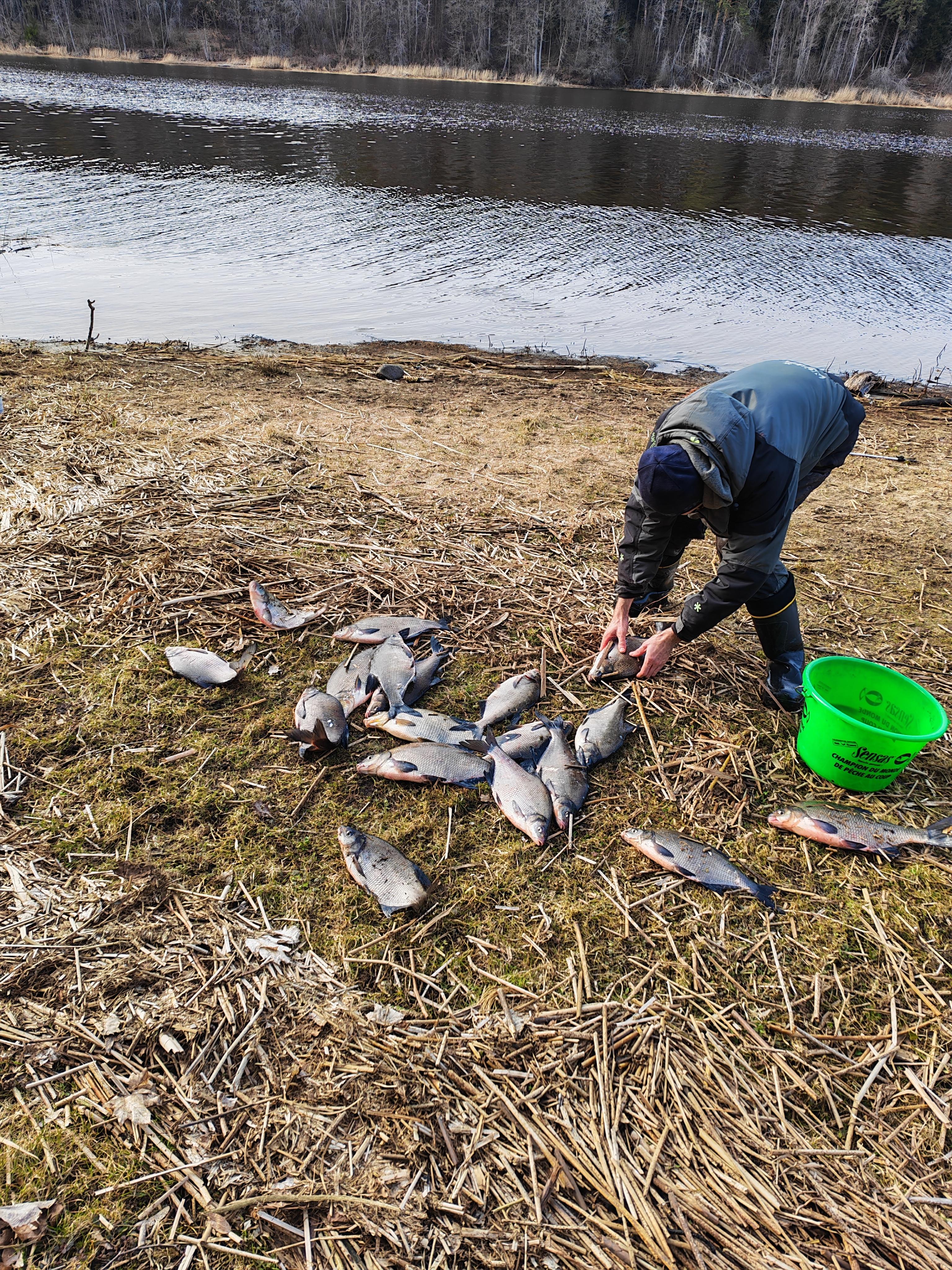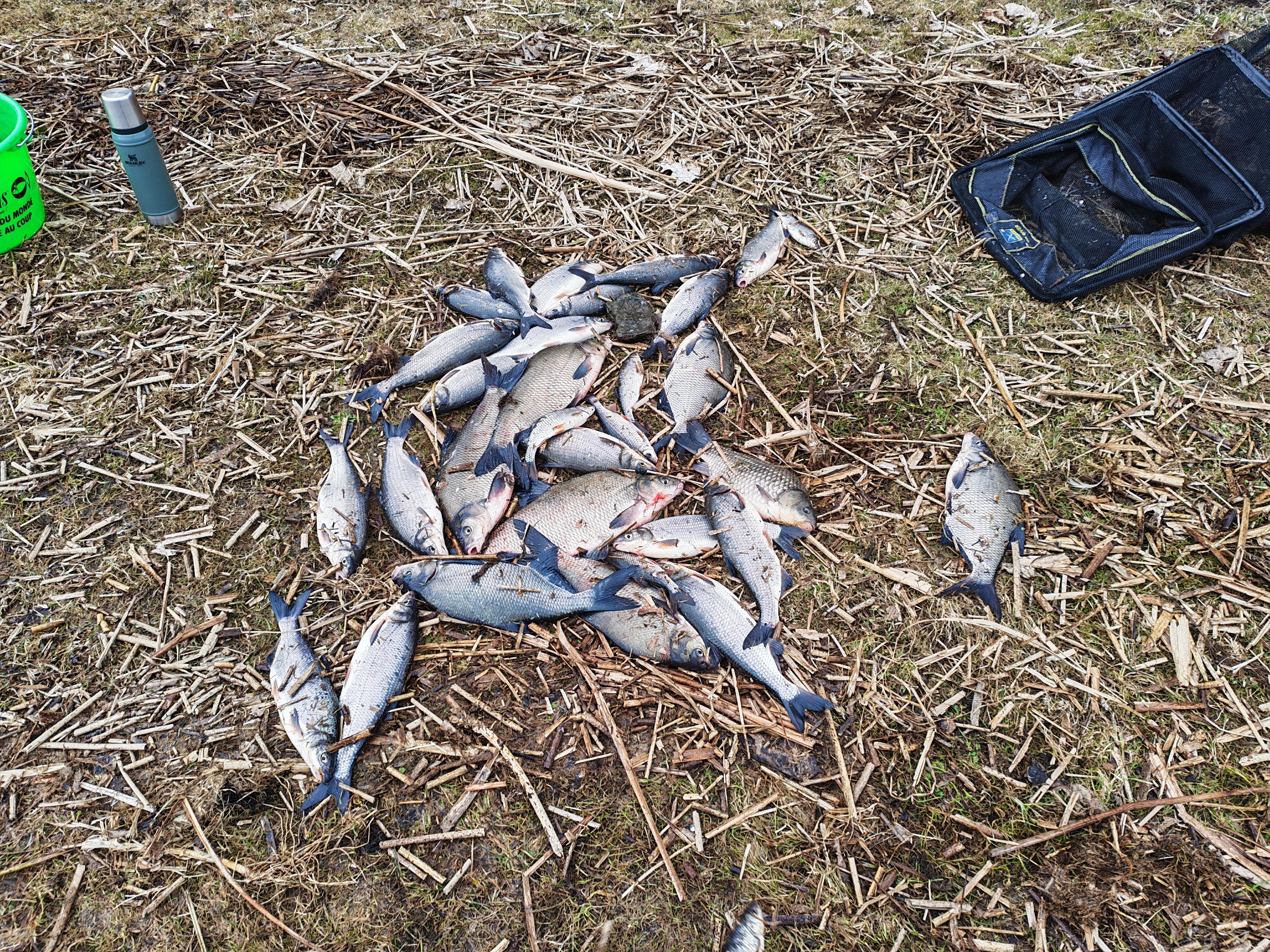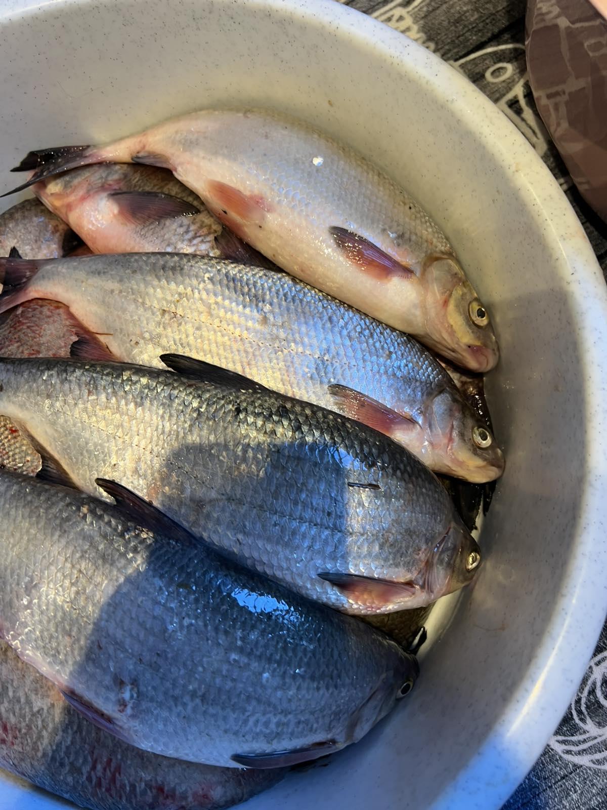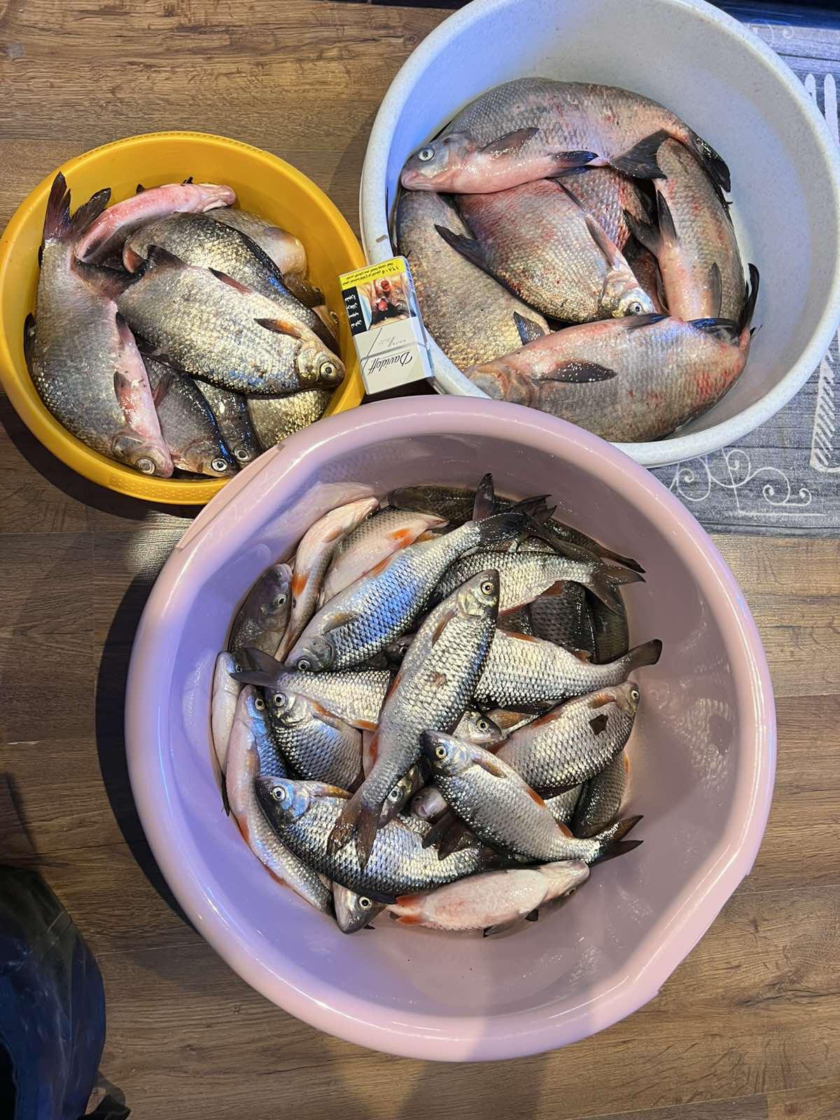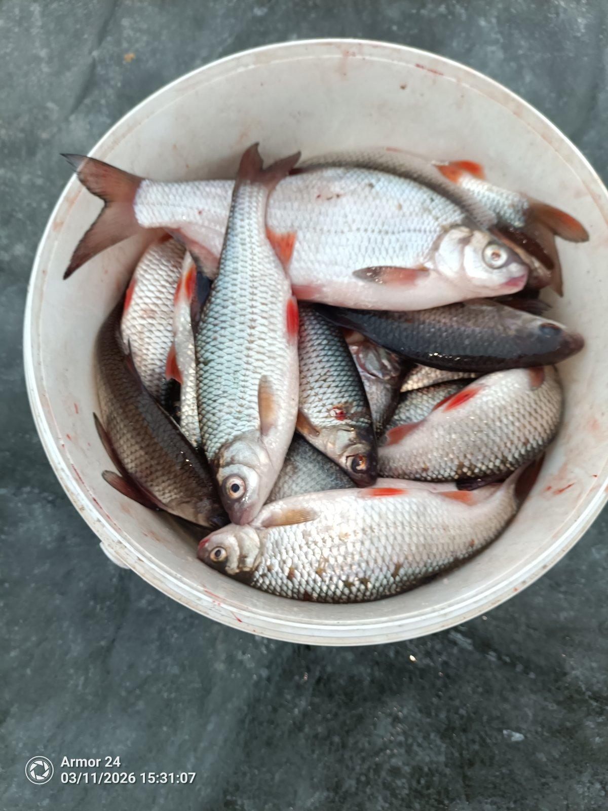 В улове 9 кг плотвы ( вот только не помню, этот вес с вимбой или без неё ) и 12 кг леща и густеры.