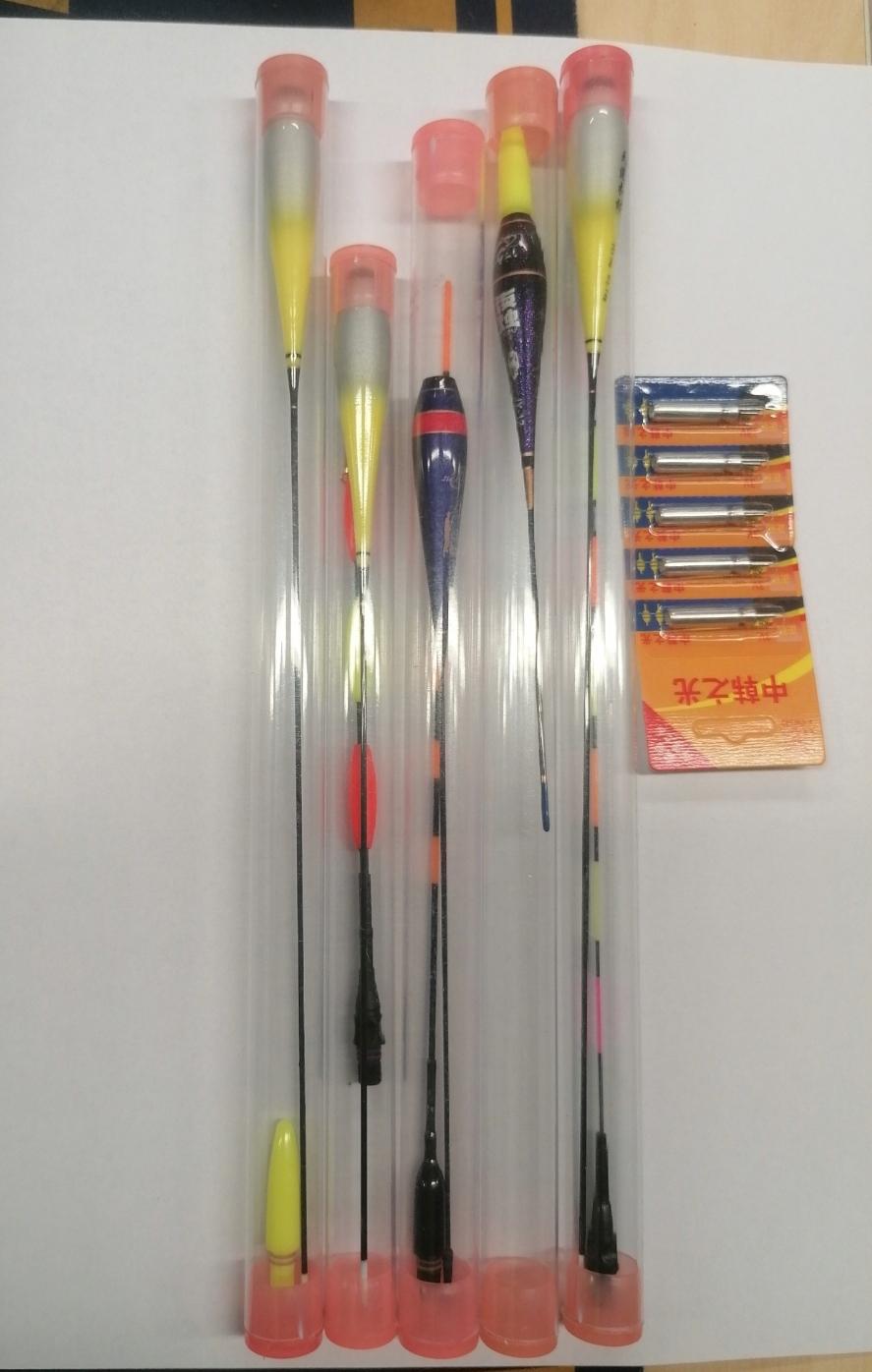 ПЯТЬ «умных» поплавков. Светятся в ночи зелёным, при поклёвке меняют цвет на красный. Очень удобны в использовании ! ( Их у нас постоянно спрашивают в магазине, но в продаже их нет ). Знаю, что рыбаки с удовольствием используют их при ловле линя, леща. Но никто не запрещает ловить и другую рыбу.