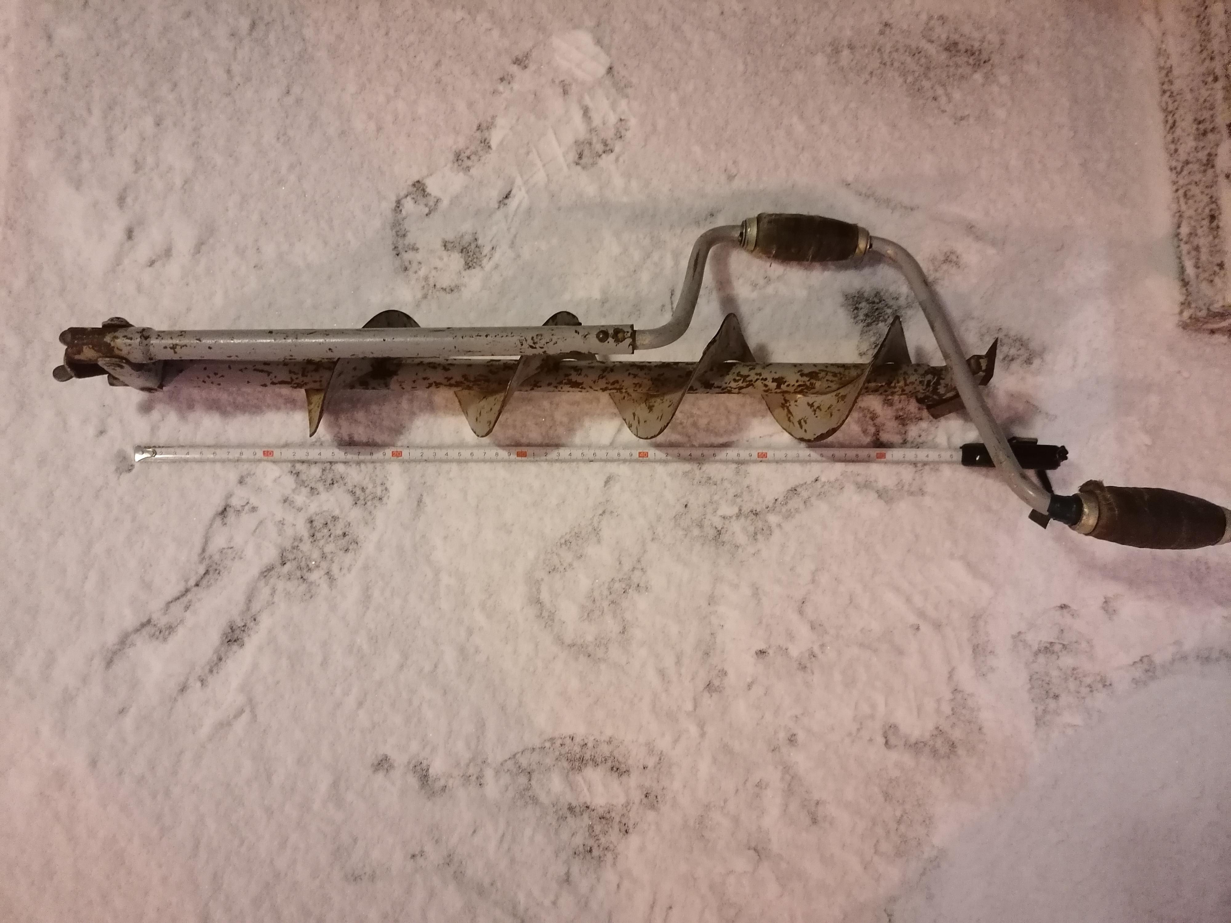Выставляю на аукцион древний ( то есть РАРИТЕТНЫЙ ) ржавый бур ( при ближайшем рассмотрении — и не такой уж и ржавый.))) А как показала ЛИЧНАЯ практика двух моих крайних рыбалок на Пярнуском заливе, сверлит не бур, а ножи. Так что «старость» и ржавчина — дело вторичное. Зато метал с советских времён!!! ( О — го -го!! ещё ТОТ квалитет! )