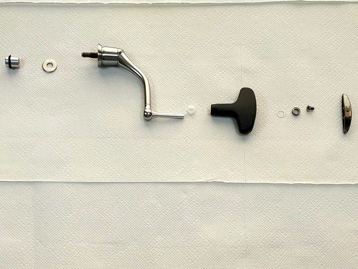 Новая ручка имеет кноб, который применяется на 16’Stradic Ci4+ и его производных. Внутри кноба видим втулку и один из подшипников. При желании втулку можно заменить на подшипник размера 4х7х2.5.