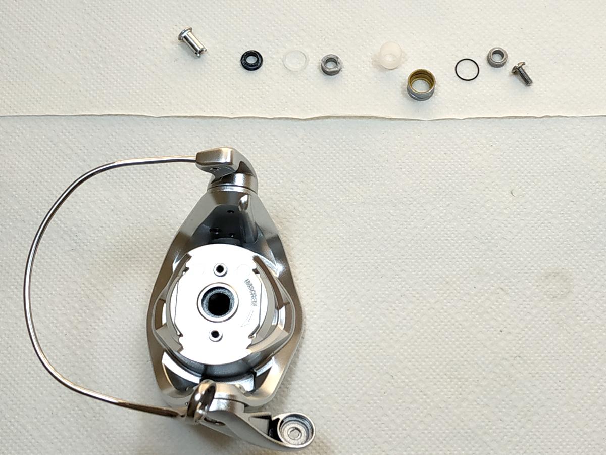 Ролик лесоукладывателя имеет новую, нигде до этого не применявшуюся конструкцию. В последних поколениях катушек Shimano, в среднем и топ классах, применялась конструкция, где подшипник был запрессован внутрь ролика. Это часто вызывало критику, т.к. при выходе из строя подшипника, приходилось заменять весь ролик, а это существенно дороже, чем заменить подшипник. Похоже в Shimano прислушались к критике и мы имеем разборный ролик новой конструкции.