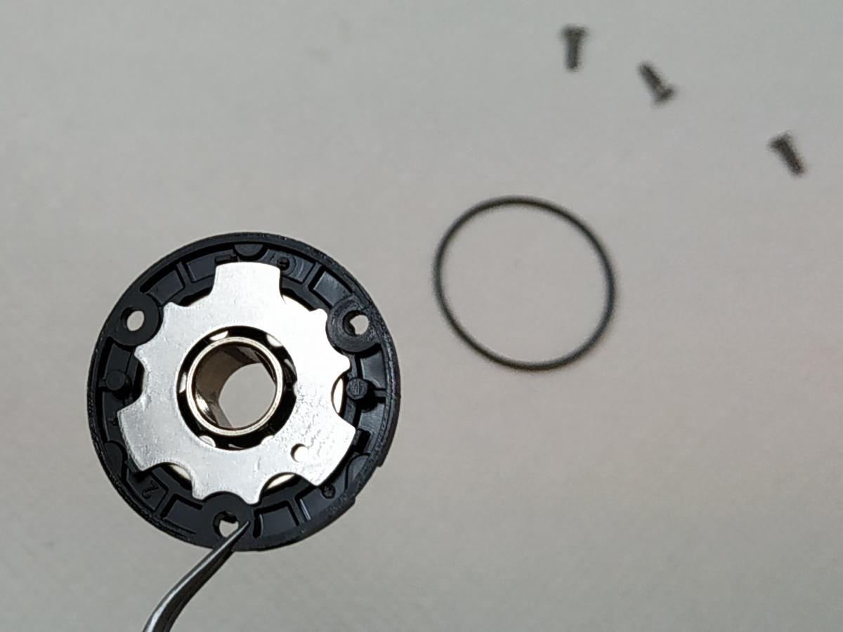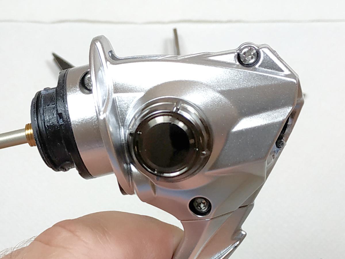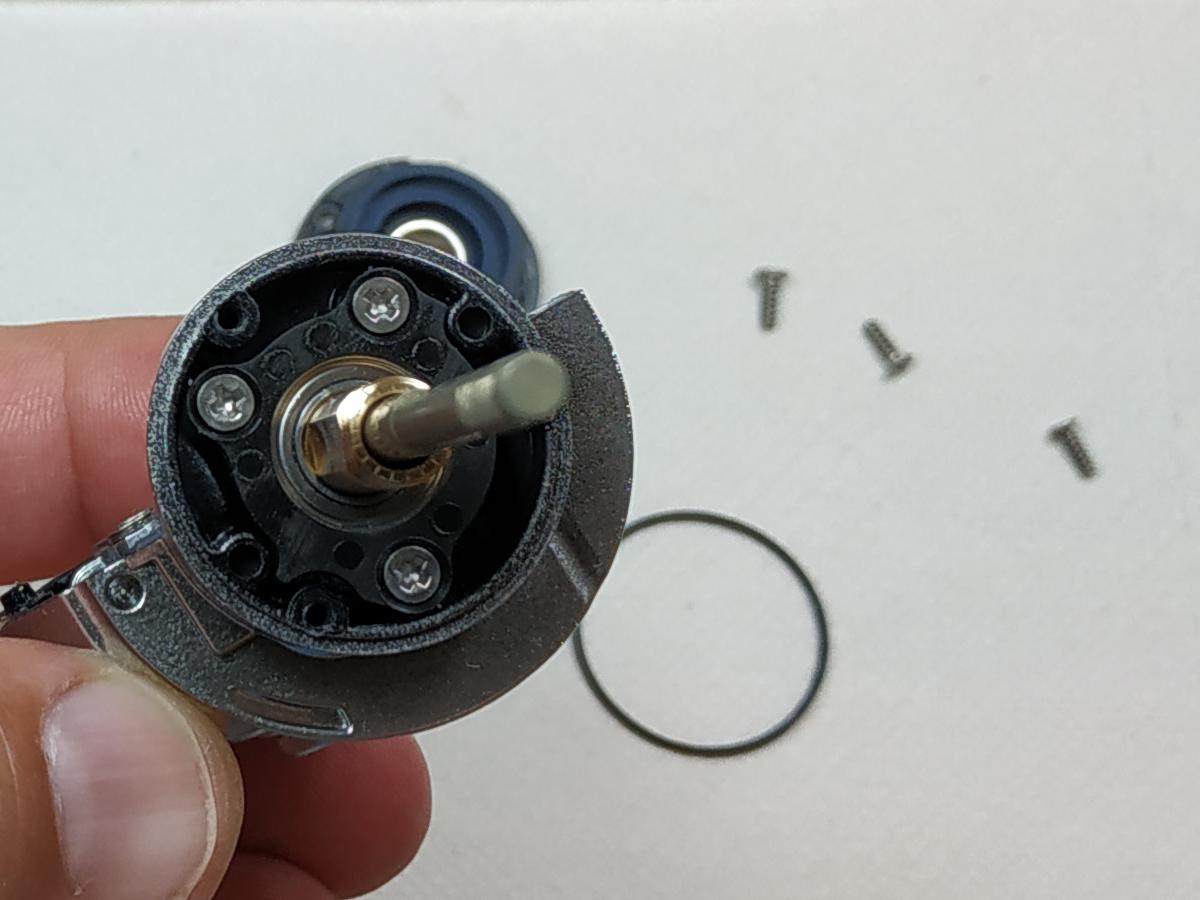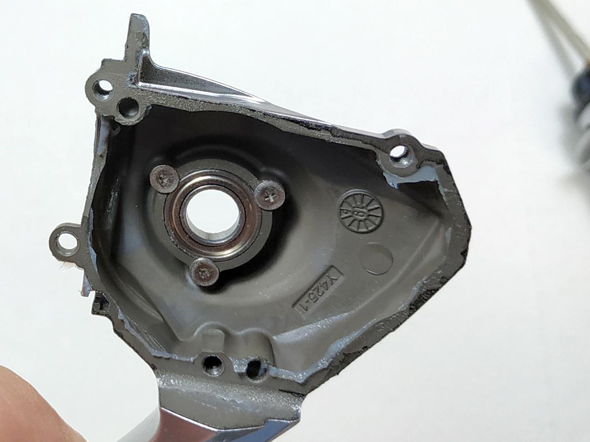 Сняв крышку в задней части корпуса, которая закрывает доступ к бесконечному винту, обнаруживается очередная новинка — фторопластовая втулка задней опоры бесконечника полностью закрытая одной стороны. Раньше сюда ставили обычные втулки и металлический кончик бесконечника при определенных условиях мог постукивать по металлической крышке на корпусе. Теперь эту проблему убрали.