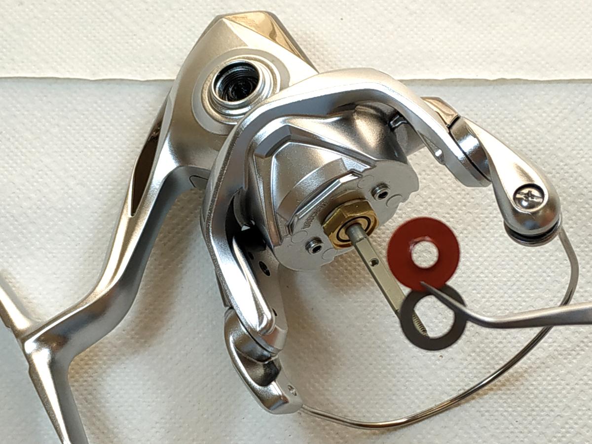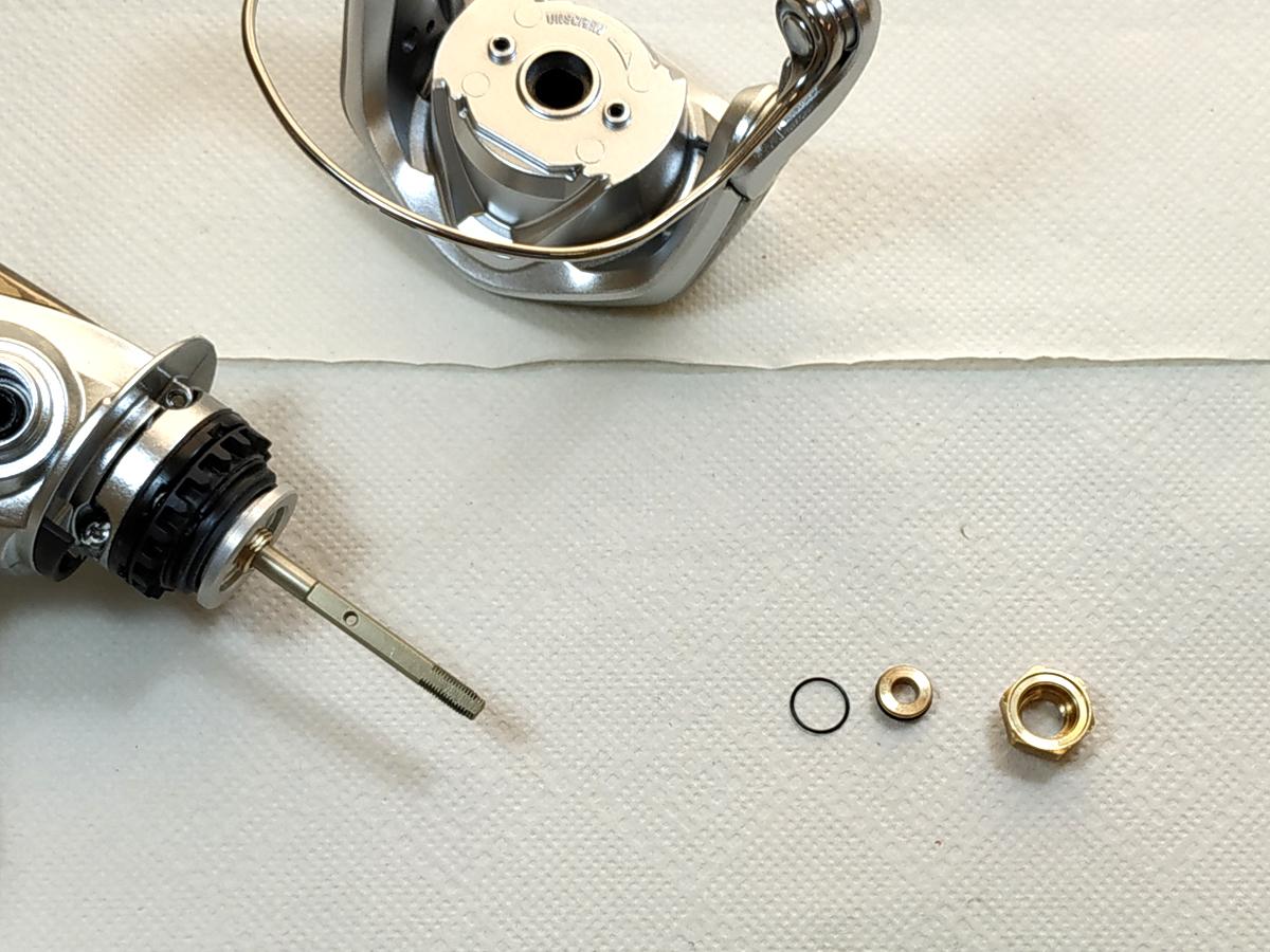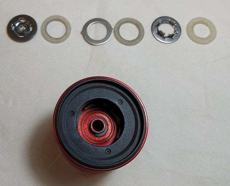 Подшпульный узел, также знаком по предыдущим поколениям. Здесь имеется белая фторопластовая втулка, которую при желании можно заменить подшипником 7х11х3. Такая замена дает более плавное вращение шпули при работе фрикциона.