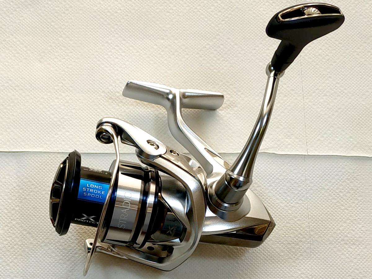 Это цельная ручка — ручка больше не складывается при отвинчивании. И шпуля с удлиненным лесопроёмом — это решение также раньше было только на Stella и Vanquish 2019 года. Шимановская таблица совместимости шпуль говорит, что теперь со Stradic можно применять шпули от 18-19’Stella и 19’Vanquish. Удлиненный лесопроём, по заявлению Shimano, увеличивает дальность заброса примерно на 5%.