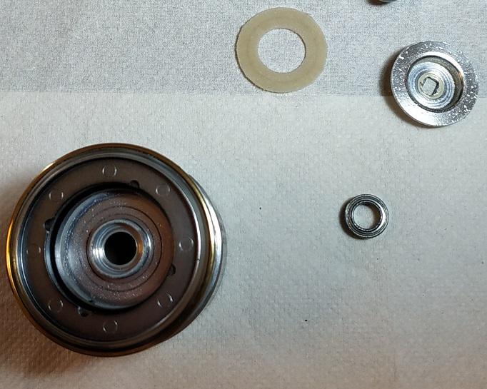 Задняя втулка – подшипник 3х6х2, передняя втулка – подшипник 2х5х2.5.Так вот — для замены задней втулки понадобится подшипник 3х6х2.5 и регулировочные шайбы конечно.