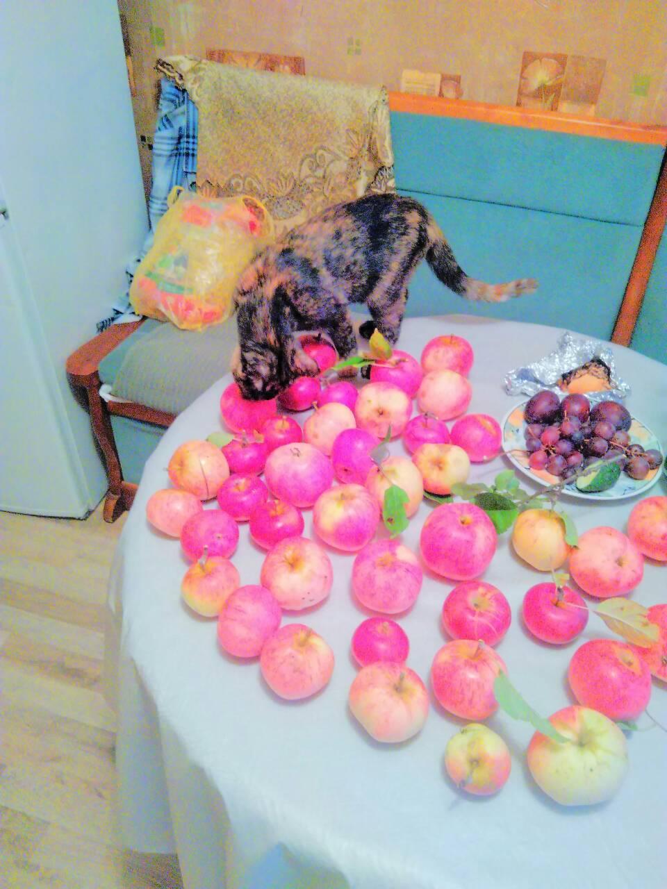 На обратной дороге набрали вкуснейших осенних яблок. Даже моей лапочке приглянулись.
