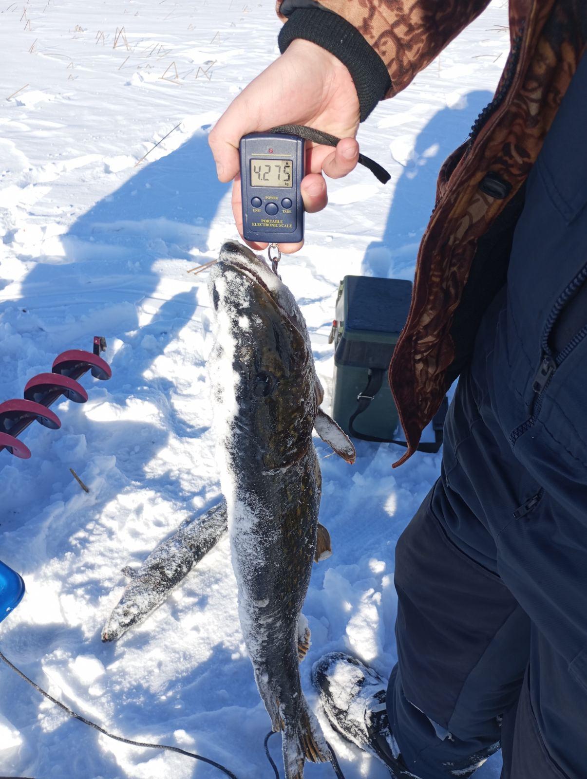 Одна 46 см ( на фото. Чуть кровили жабры, но думаю не критично. Выживет ), вторая 56см. Толстенькая и хорошенькая. Была неплохая поклёвка на подлещика, но жерлица скинула петлю, перепуталась и рыба не засеклась.