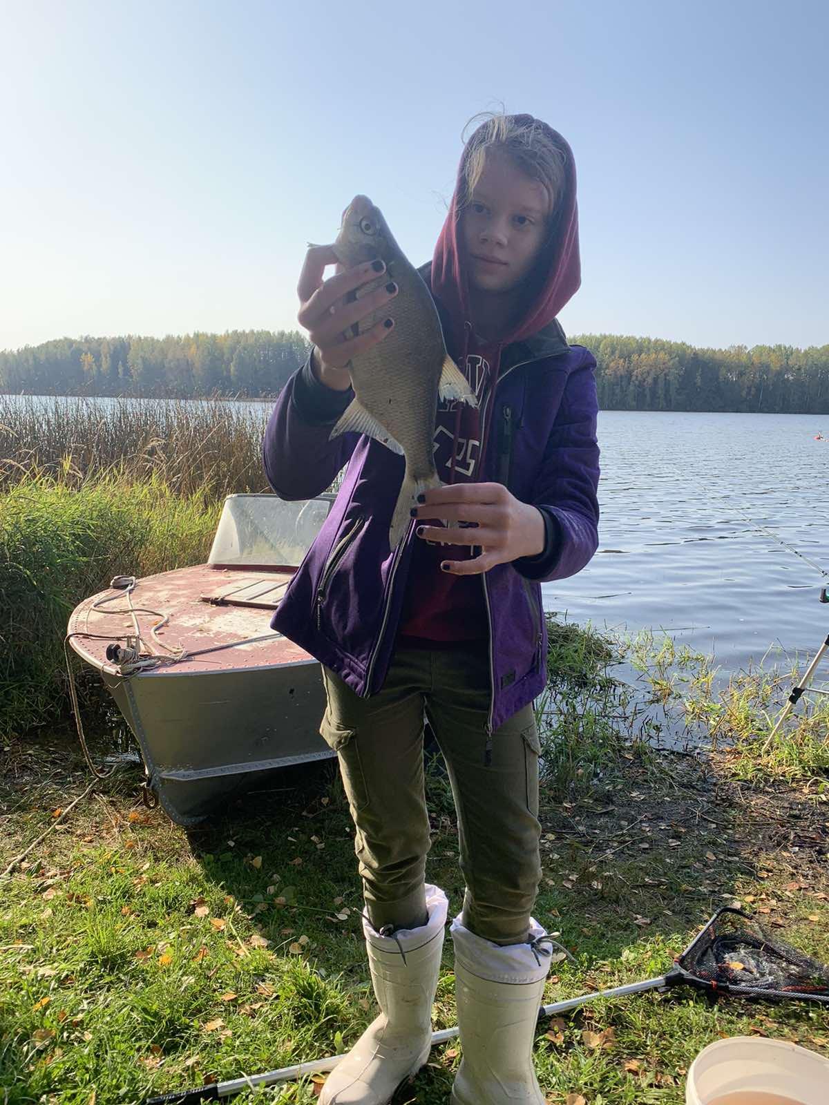 Хотя многие говорили, что ночью ловится крупный лещ, мы в тёмное время упираться не стали, так как поехали с ребёнком. Это первая её рыбалка. Приучаем к фидеру.»
