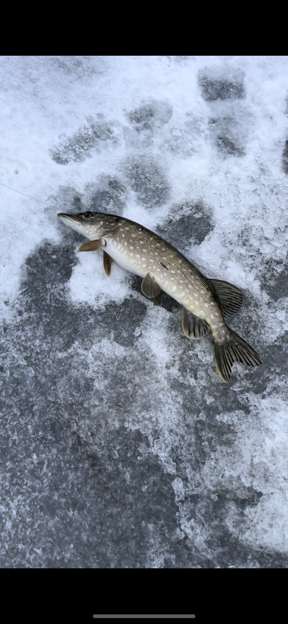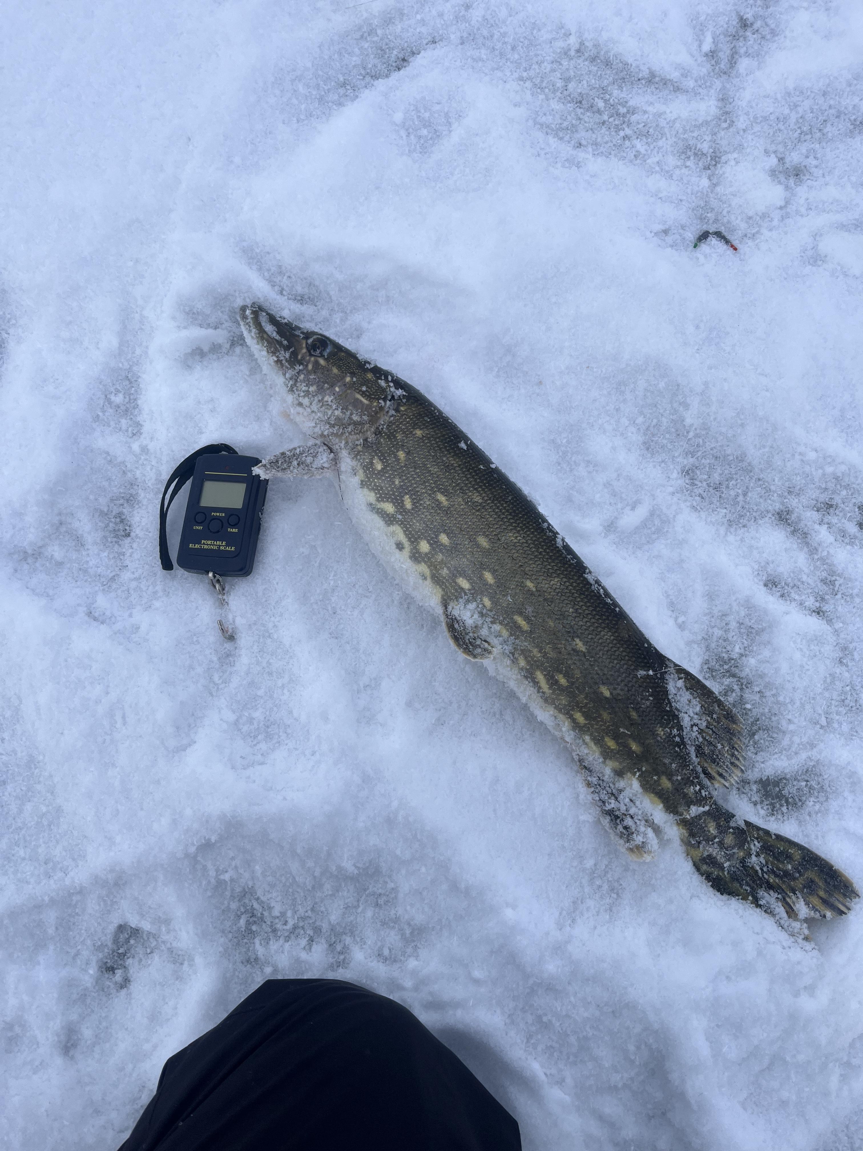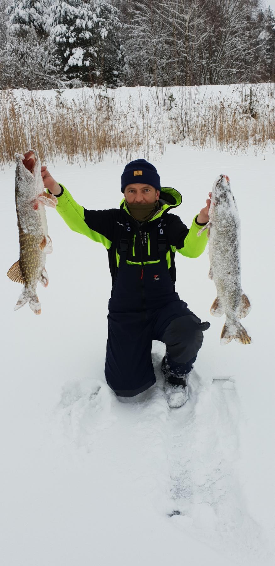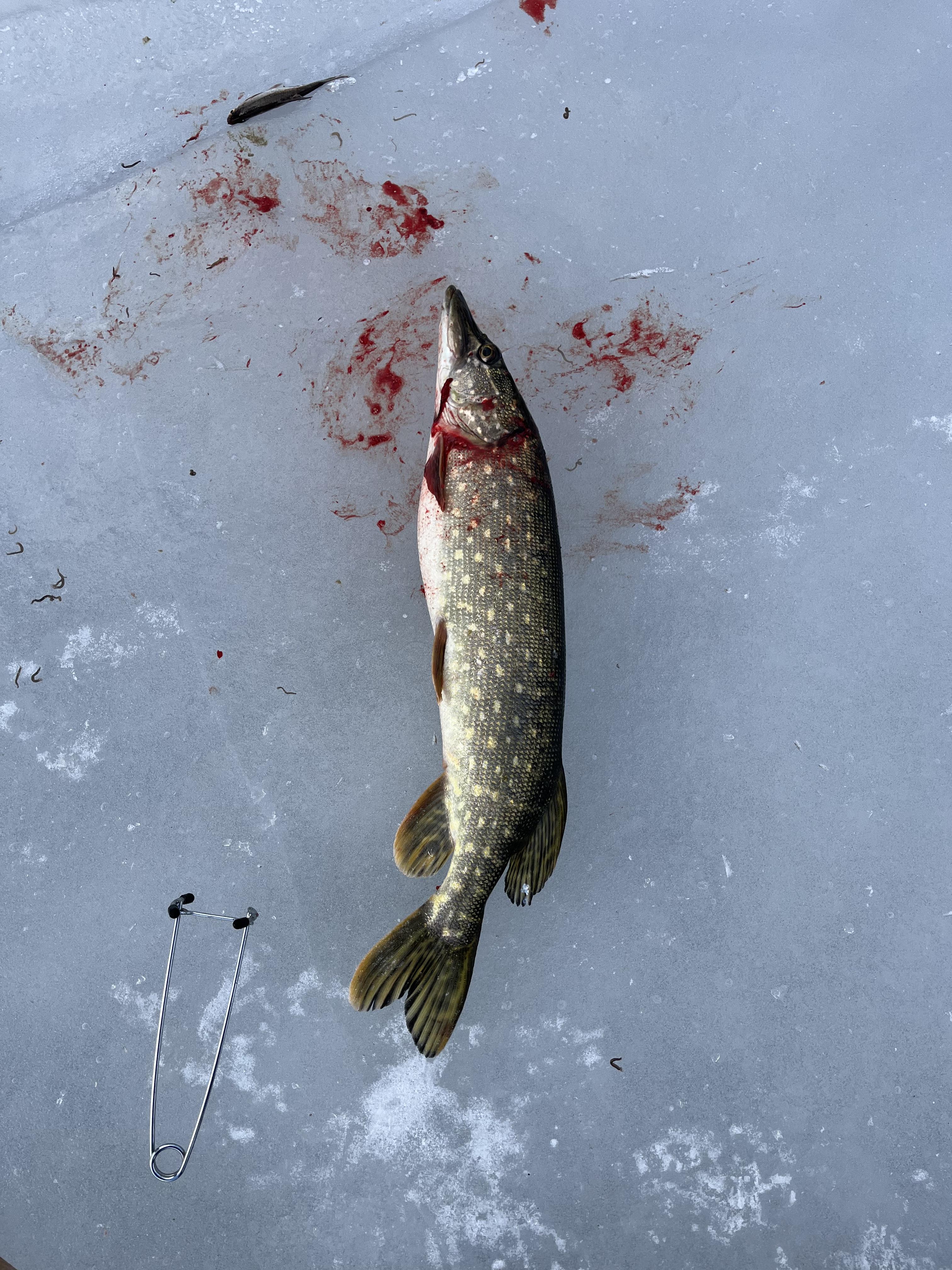 Тут подоспел и для меня оператор и наконец-то щучка на льду, первая за последние 5 рыбалок! Пускай и не большая, околокилошка, но долгожданная)
