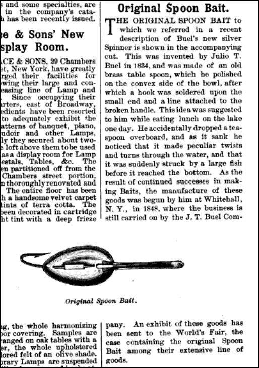 Затем было всякое, но у Бьюэла появилось свое дело по производству ложковидных приманок, а в 1852 году он получил на это дело патент. Америка уже тогда была Америкой и жила по закону цыганского табора – Кто первый встал, тот красивее всех оделся. Т.е. кто запатентовал что-то, тот и молодец. Хулио был молодцом и запатентовал свою ложу, чтоб другим неповадно было.