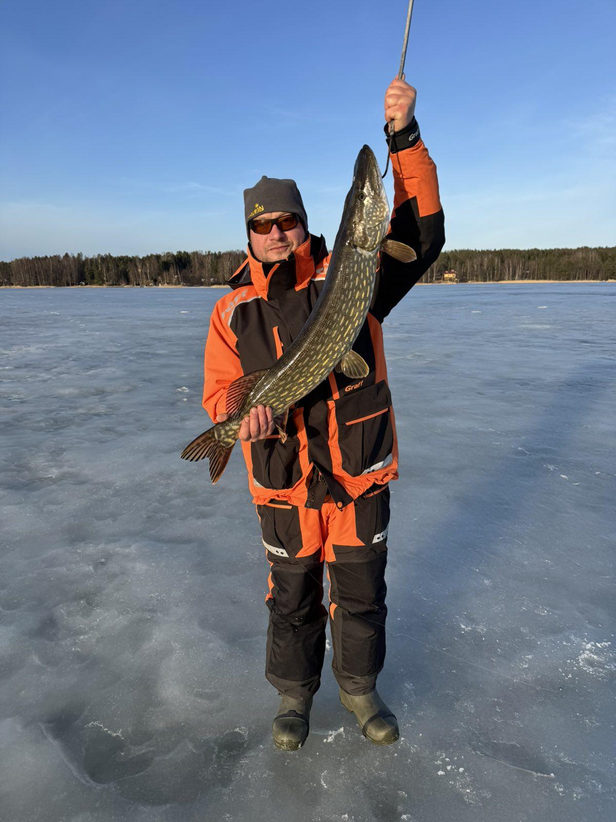 На следующий день как в ванне. Щуку приходилось уговаривать. На двоих с трудом вымучили 7 штук, причём 3 из них было «эстонского» размера ( 54-55см ). Окунь вообще не попадался.