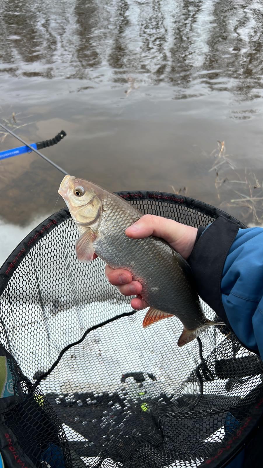 На прикормку подошёл язь. Не даёт никому встать на стол. У Евгения их в зачёте уже 4 штуки. Язёк некрупный, 600-700гр. Все нещадно топятся.