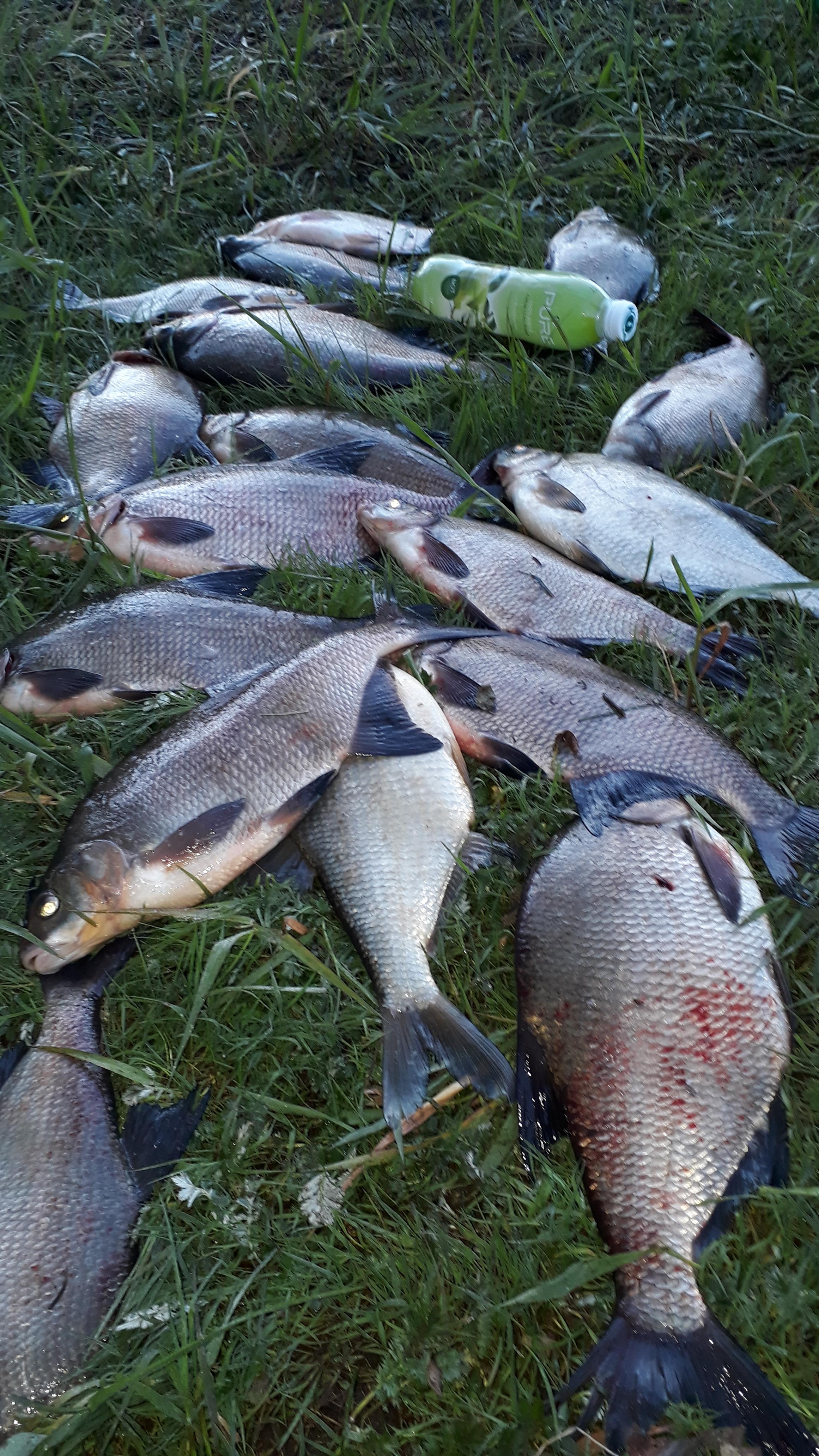 NikolaiУчастникПосетил реку с 25 на 26. Думал в понедельник посвободнее будет. Однако проехав вдоль реки и увидев подъезды к реке , понял что был не прав. Господа рыболовы с соседней республики несут вахту круглосуточно , передавая свои места друг другу. Рыбаку из Таллинна, то есть мне , встать некуда. Что то все таки нашел и поработав 20 минут косой, получил новое место.Рыбка клевала . Ловил на опарыша и навозника. На рассвете приподнял садок и понял, что хватит. Домой поехало 10 штук общим весом 15 кг. Остальных отпустил. Количество забранной с собой рыбы регулируется не законом, а только совестью или жадностью. У кого что есть. Фото» братской могилы» лещей выставлять не буду.