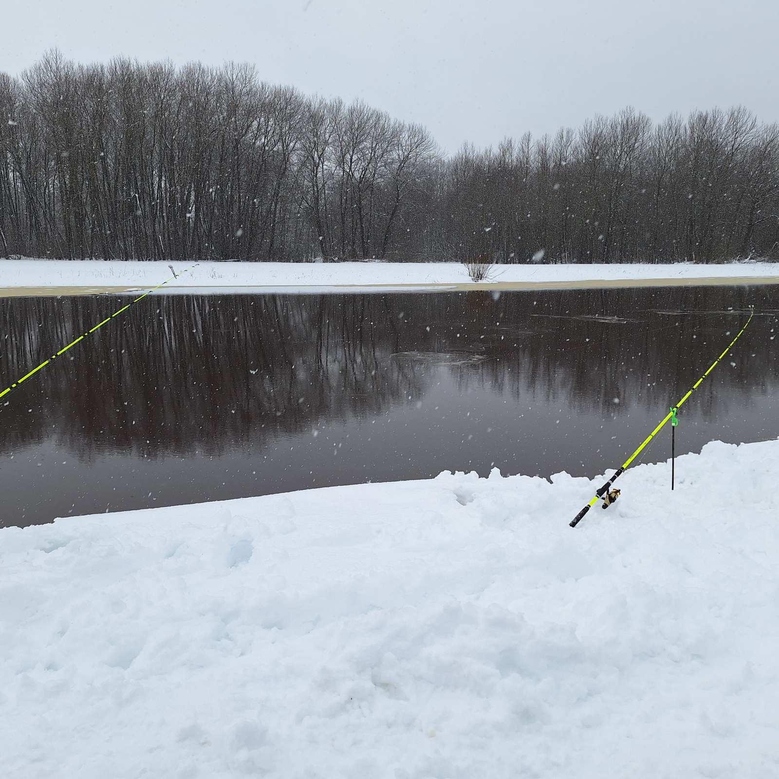 Да, снега очень много. Да, у берегов есть закраины. Да, по воде несёт немного всякой шняги, иногда проплывают льдинки, но в целом ловить можно.