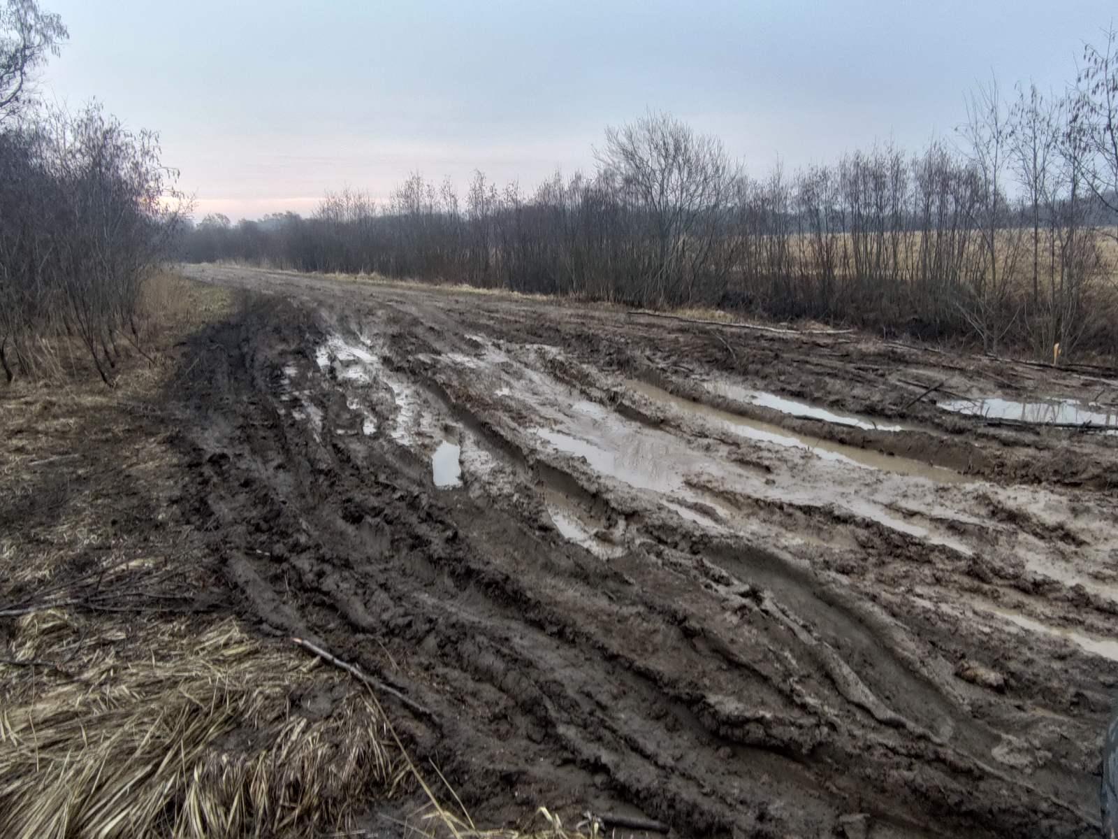rybalingХранительДорога на площадку подмёрзла, а с ней и грязь. Но всё равно к самой площадке проехать можно только лишь на джипе. Малолитражка не пройдёт. Да и смысл ?? Вся река в этом месте от берега до берега затянута льдом, промоин нет. Ловить невозможно.