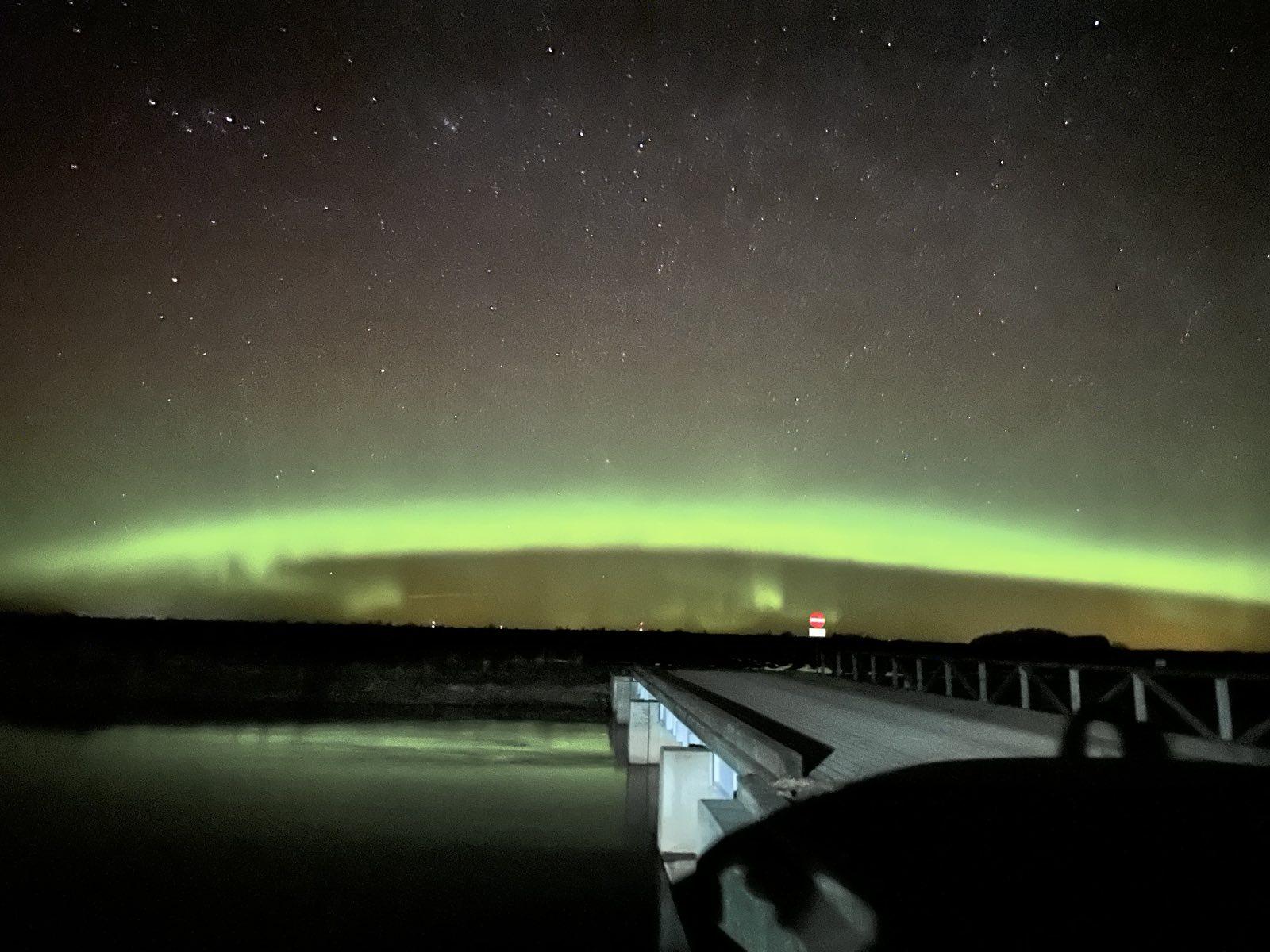 Зато ночью вот такое завораживающие зрелище предстало перед нашими рыбаками.
