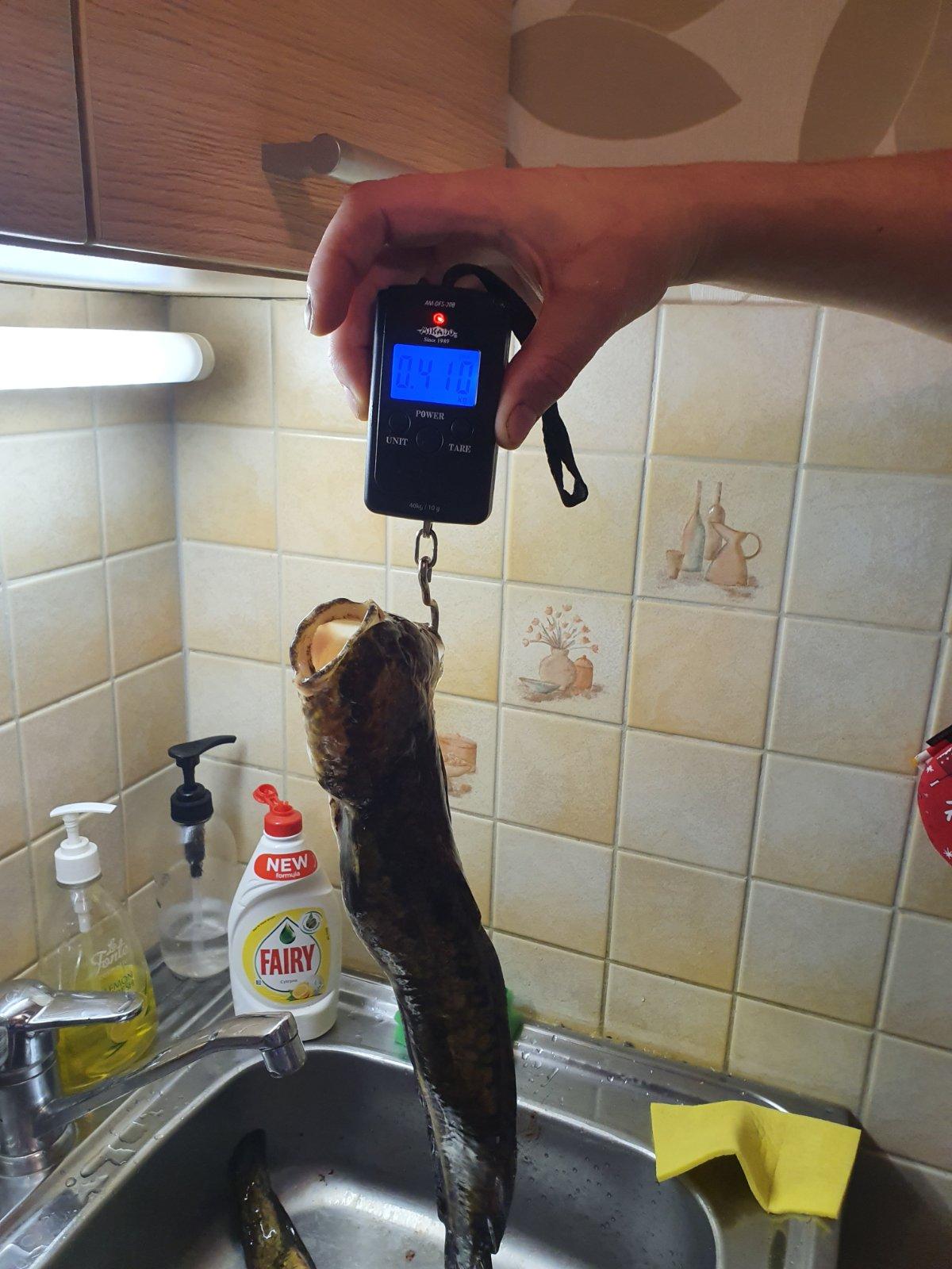 Первая рыба пошла ещё по светлому , она оказалась1.490кг