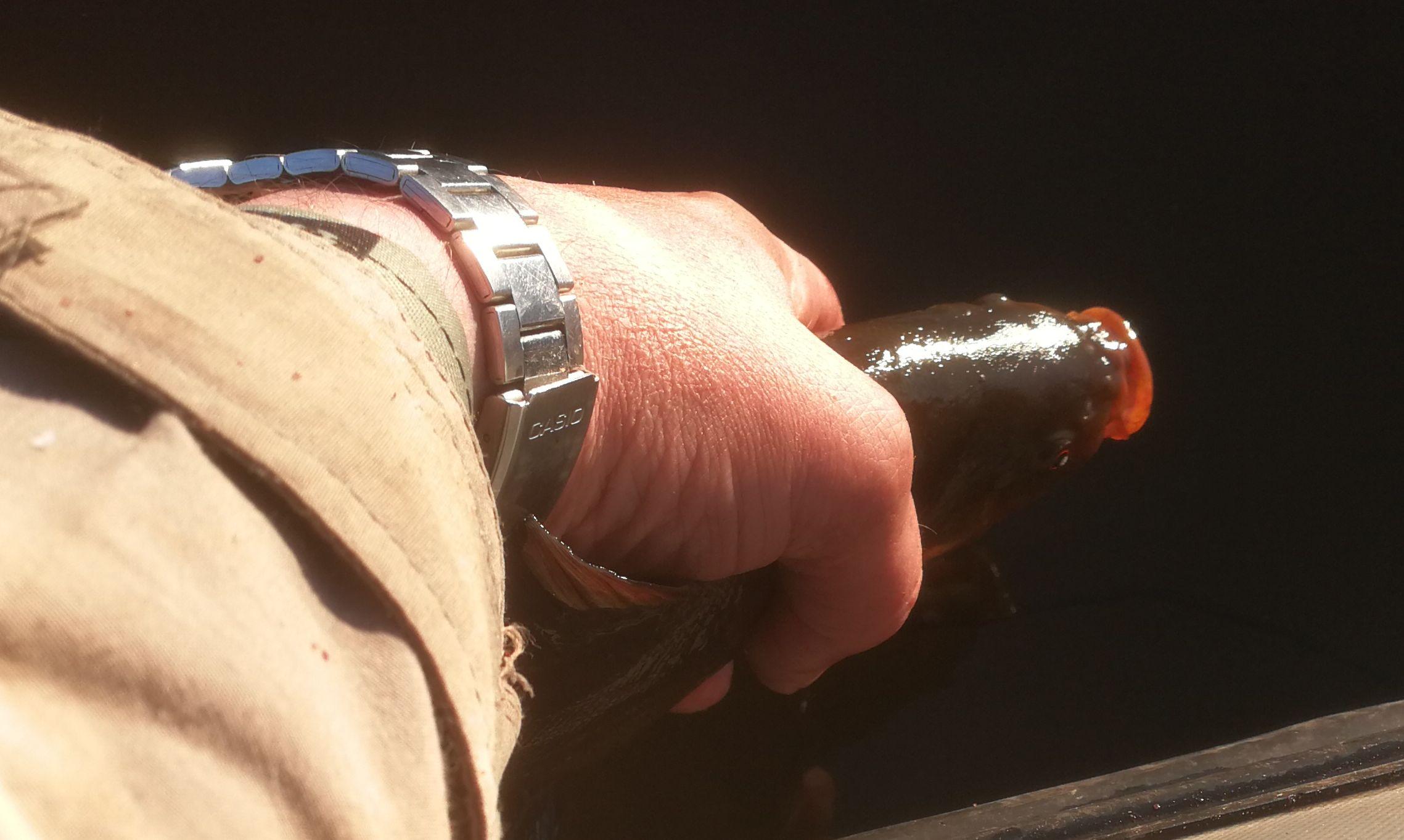 Было четыре досадных схода и три обрыва поводка( 0,18 флюрик). Потом поменял на 0,22, но было уже поздно. И как вы думаете, какие слова я в свой адрес говорил? В итоге домой поехало всего пару штук красноглазых: докилошный и закилошный. Все трофейные особи остались на своей родине.