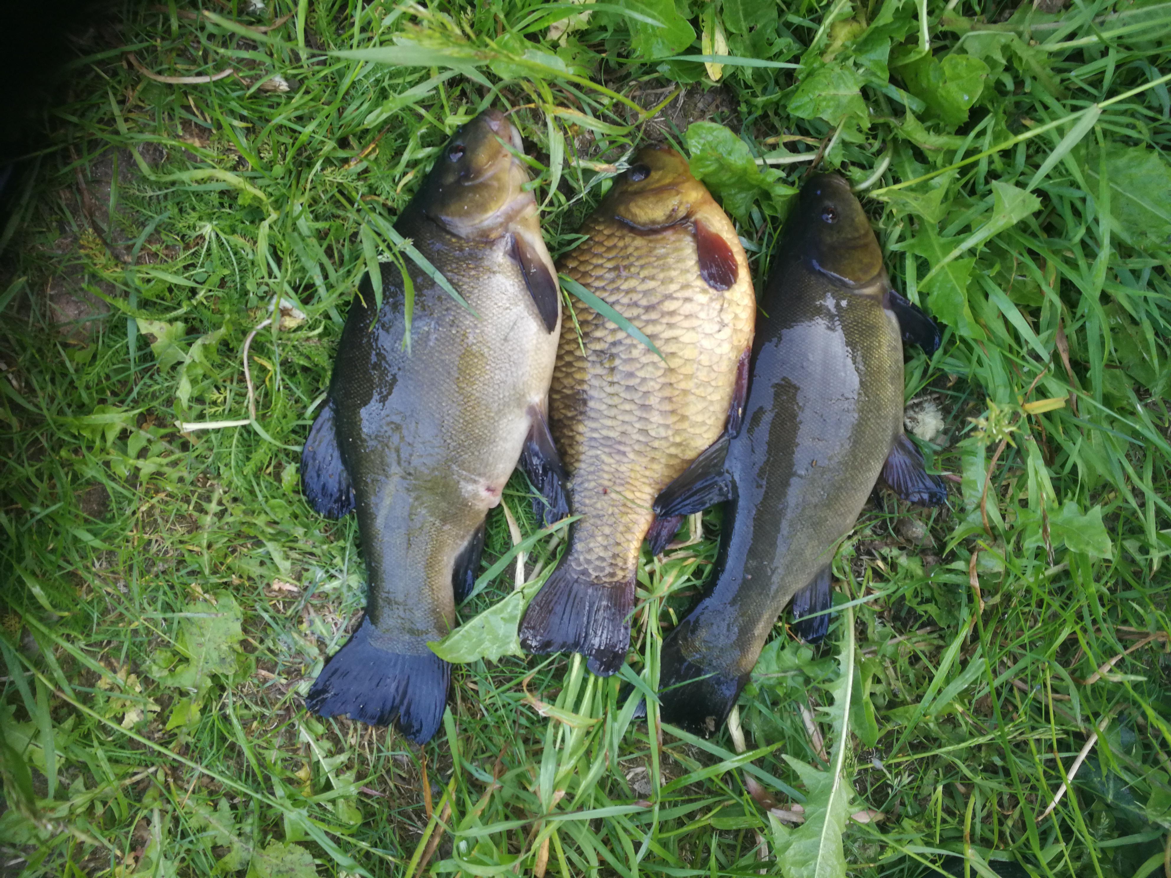 Мы встали у бобровой хатки, за ночь два линя, шесть карасей, язик. Пара сходов.