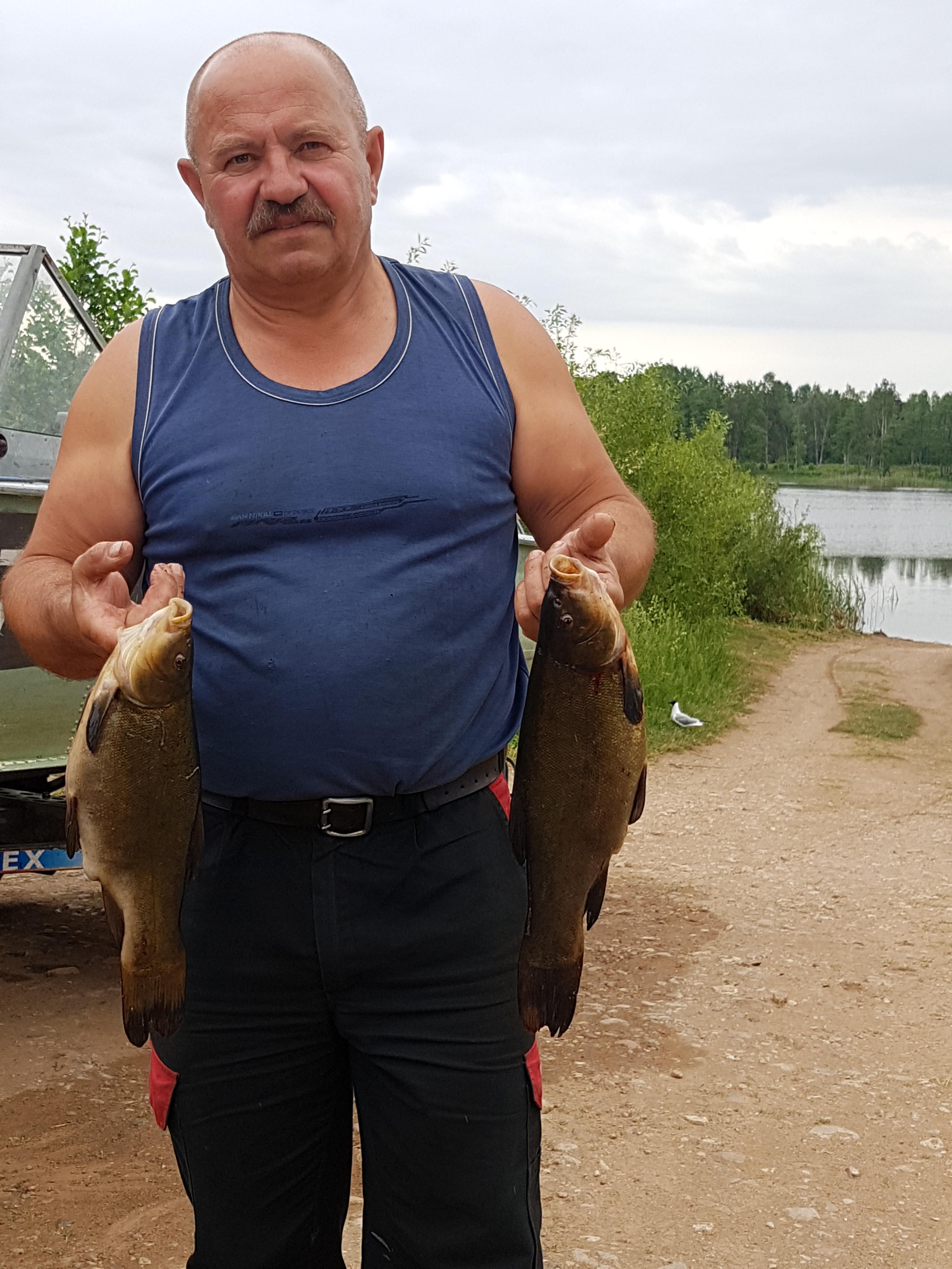 - Утром была двойная поклёвка, пока вытаскивал линя на одну удочку, вторая чуть за борт не выскочила, успел подсечь. В итоге обе рыбки оказались в садке.