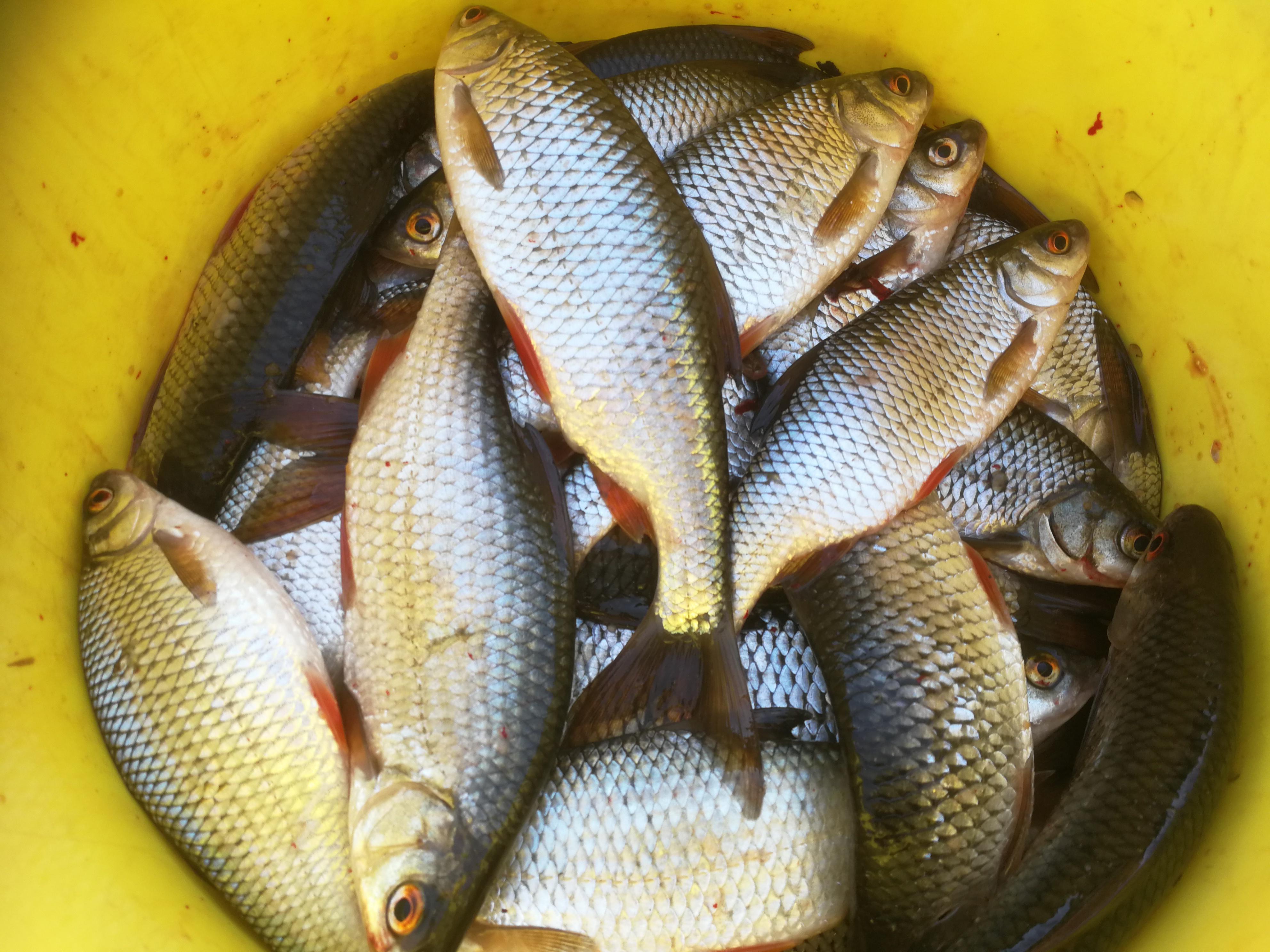 Утром вернулся.И это весь улов, был на озере один. Плотвива и краснопёрка были взяты для Гриши. Так он,зараза, плотву ест, а краснопёрку швырнул обратно в воду.