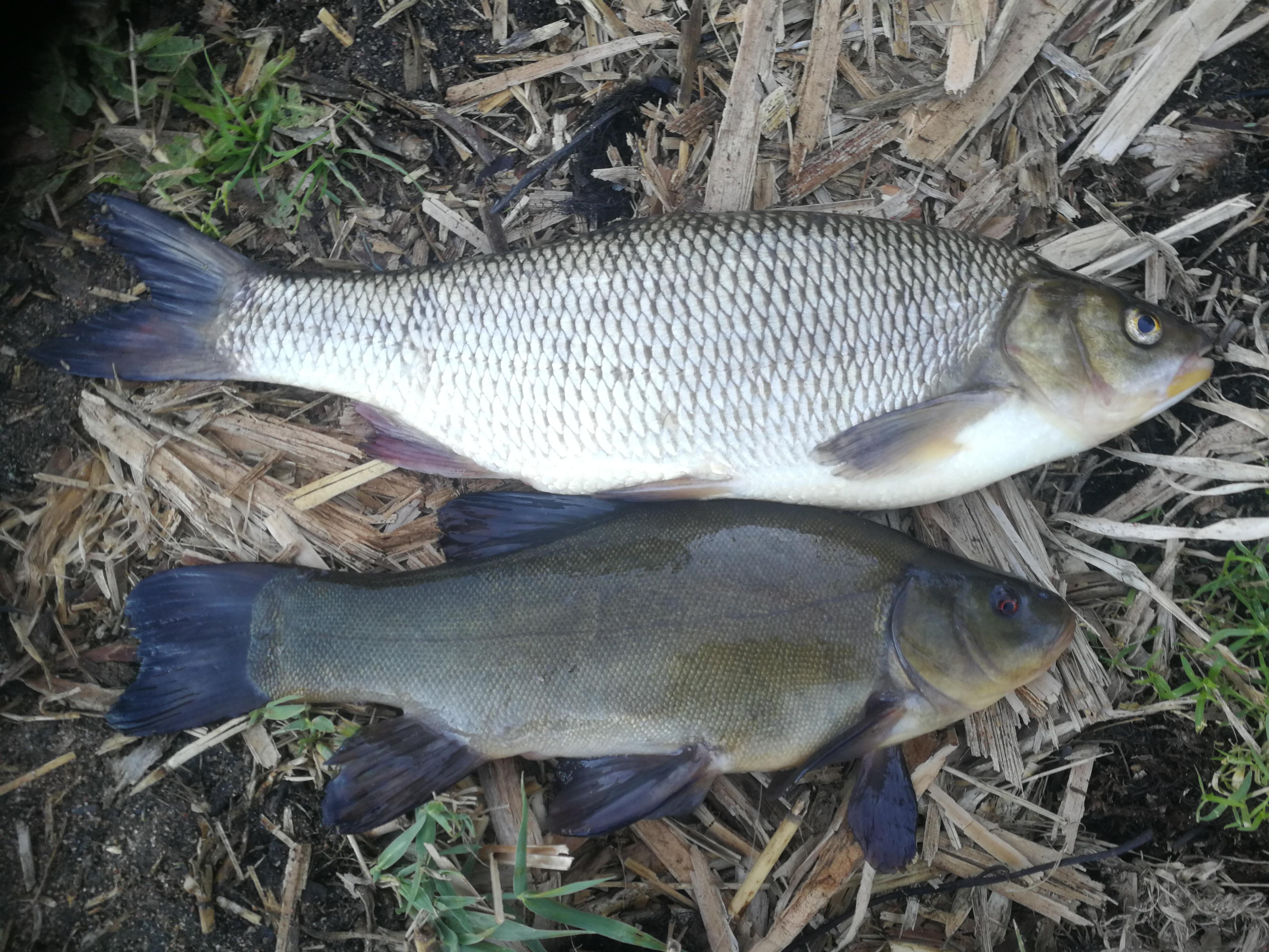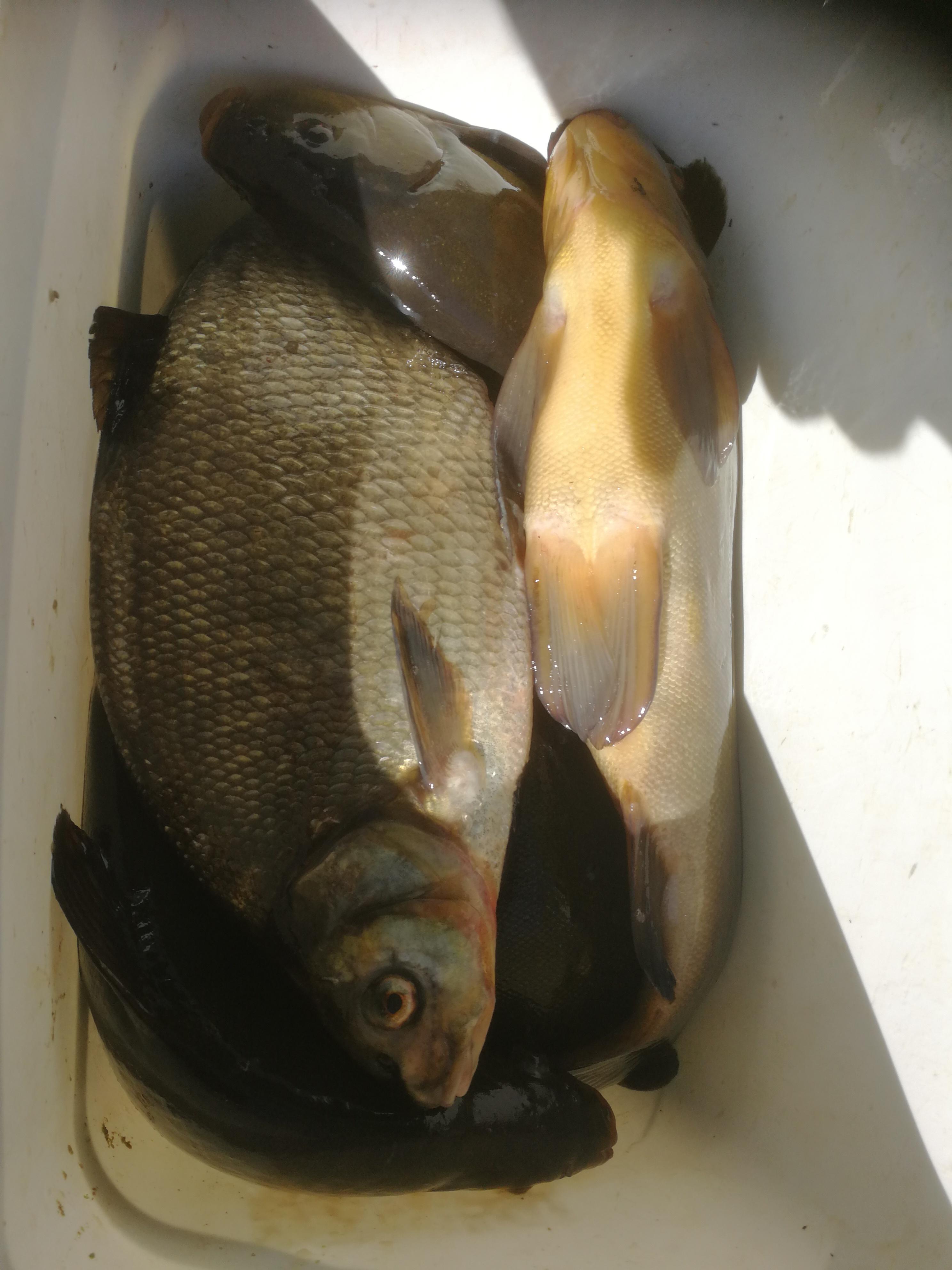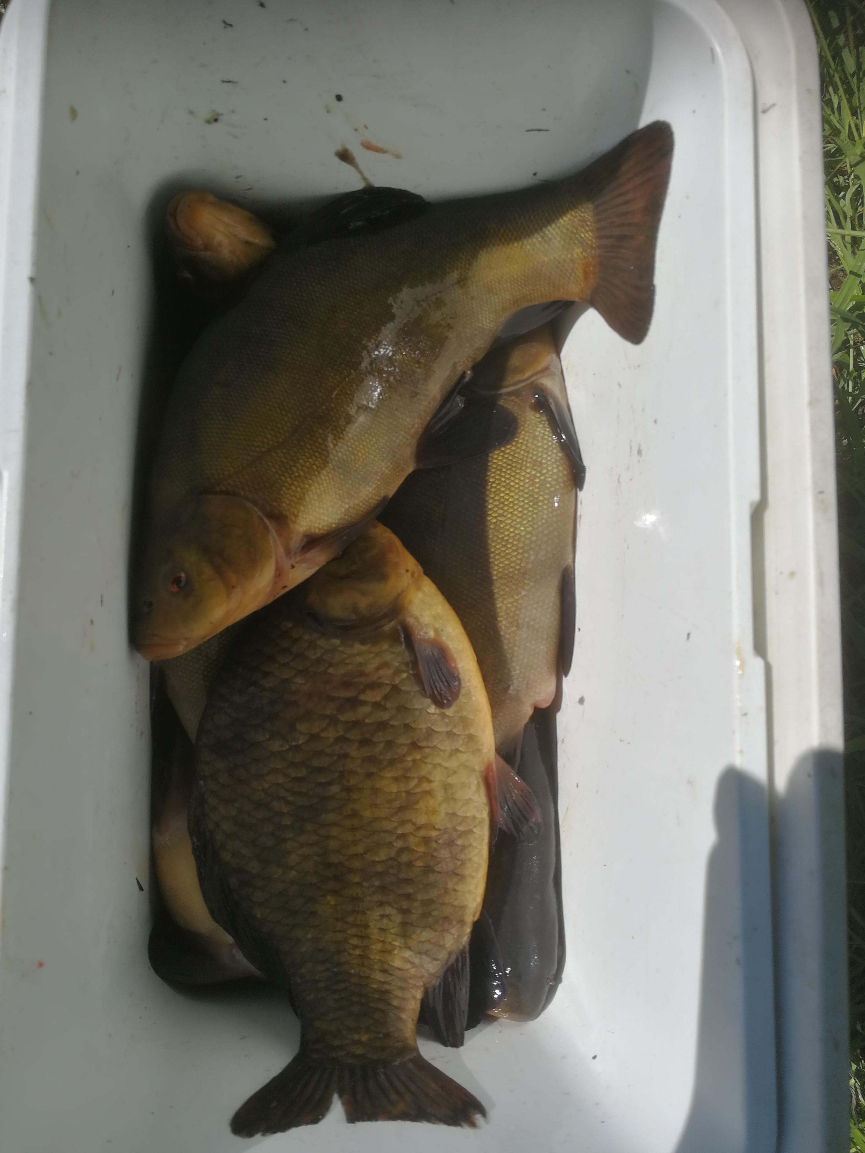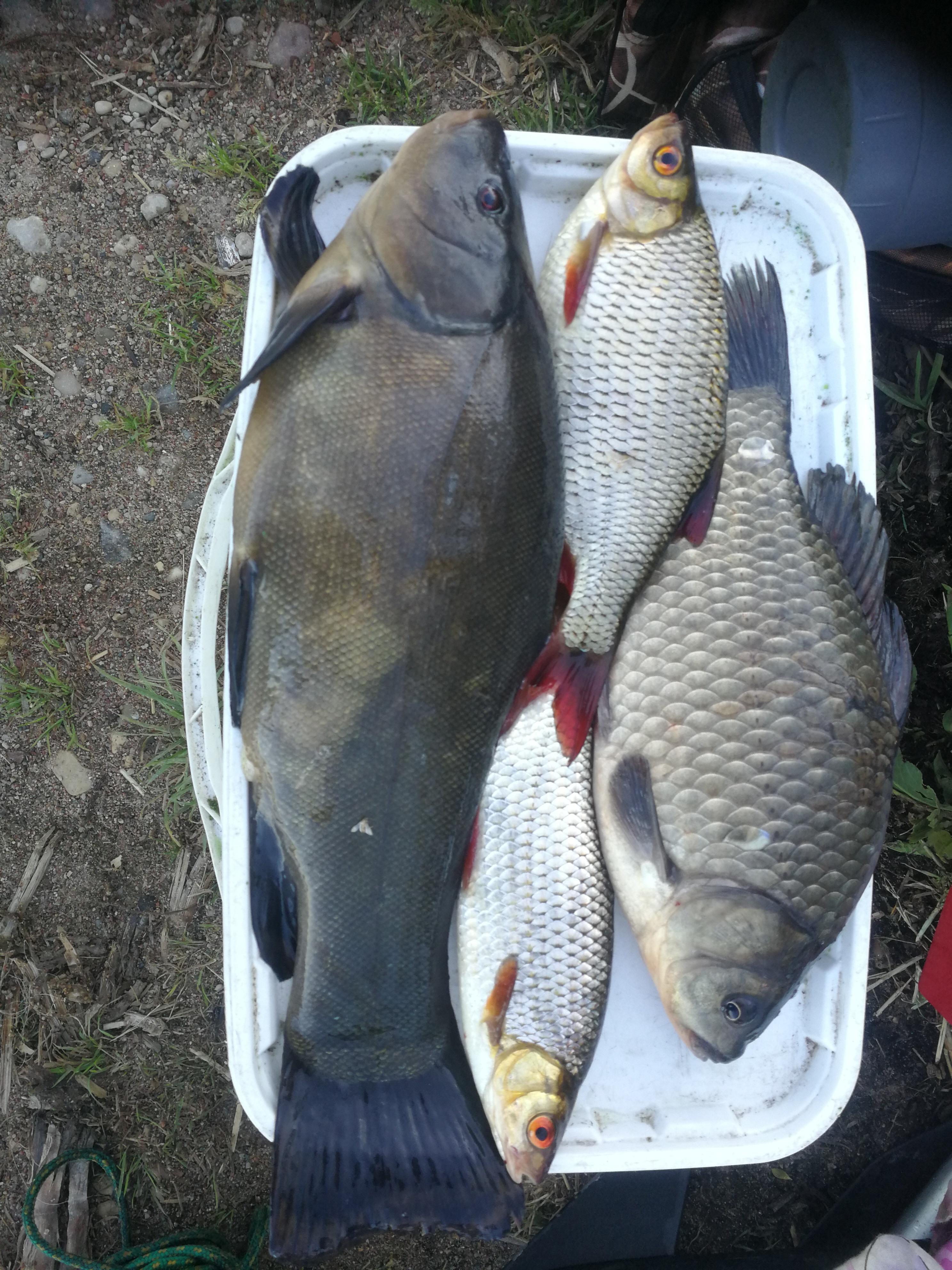 Мы встали у бобровой хатки, за ночь два линя, шесть карасей, язик. Пара сходов.