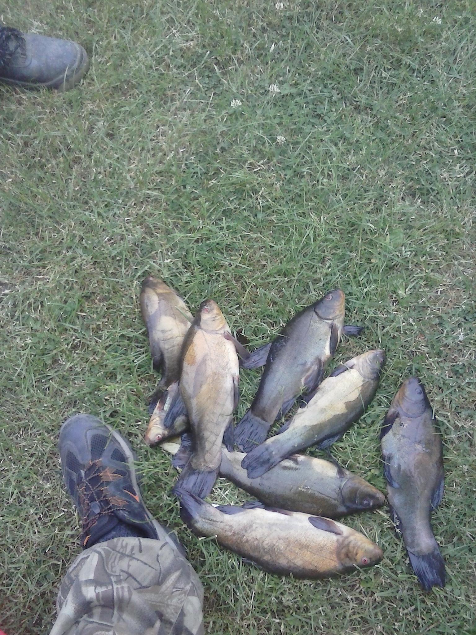 С вечера поимел 3 поклёвки и утром 3, ну и ещё карасик, но результатом я доволен так как это не худший результат, если не сказать большего( за спиной стояло 3 лодки-4 человека.Так их результат: 3 линька).В берегу как обычно встречал Григорий.