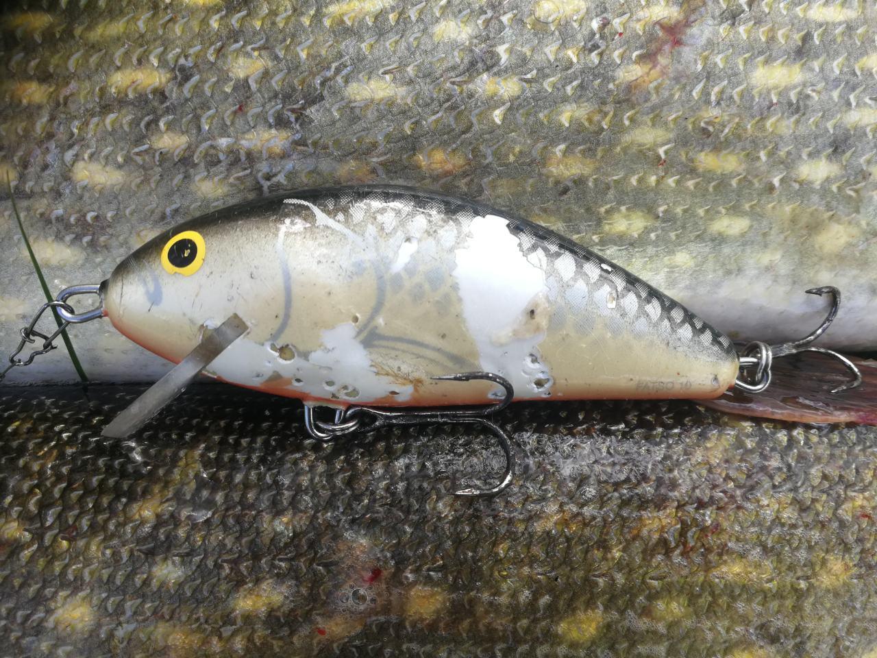 По приезду на место увидел на воде 3 лодки, которые на воде провели ночь, а результат у них был плачевный. За время проведённое на воде ни одной линёвой поклёвки. Тогда я решил сделать акцент на хищника. С утра как-то тихо, поклёвывают одни «шнурки», даже попалась одна зубастая особь весом так грамм 100-120, ну чуть больше воблера. Пару штук были в размер, ну уж больно худые, позтому были отпущены нагуливать жирок. В районе 8-9 часов был утренний «выход». Пару штучек взял, много ударов и «боданий», а дальше опять тишина.