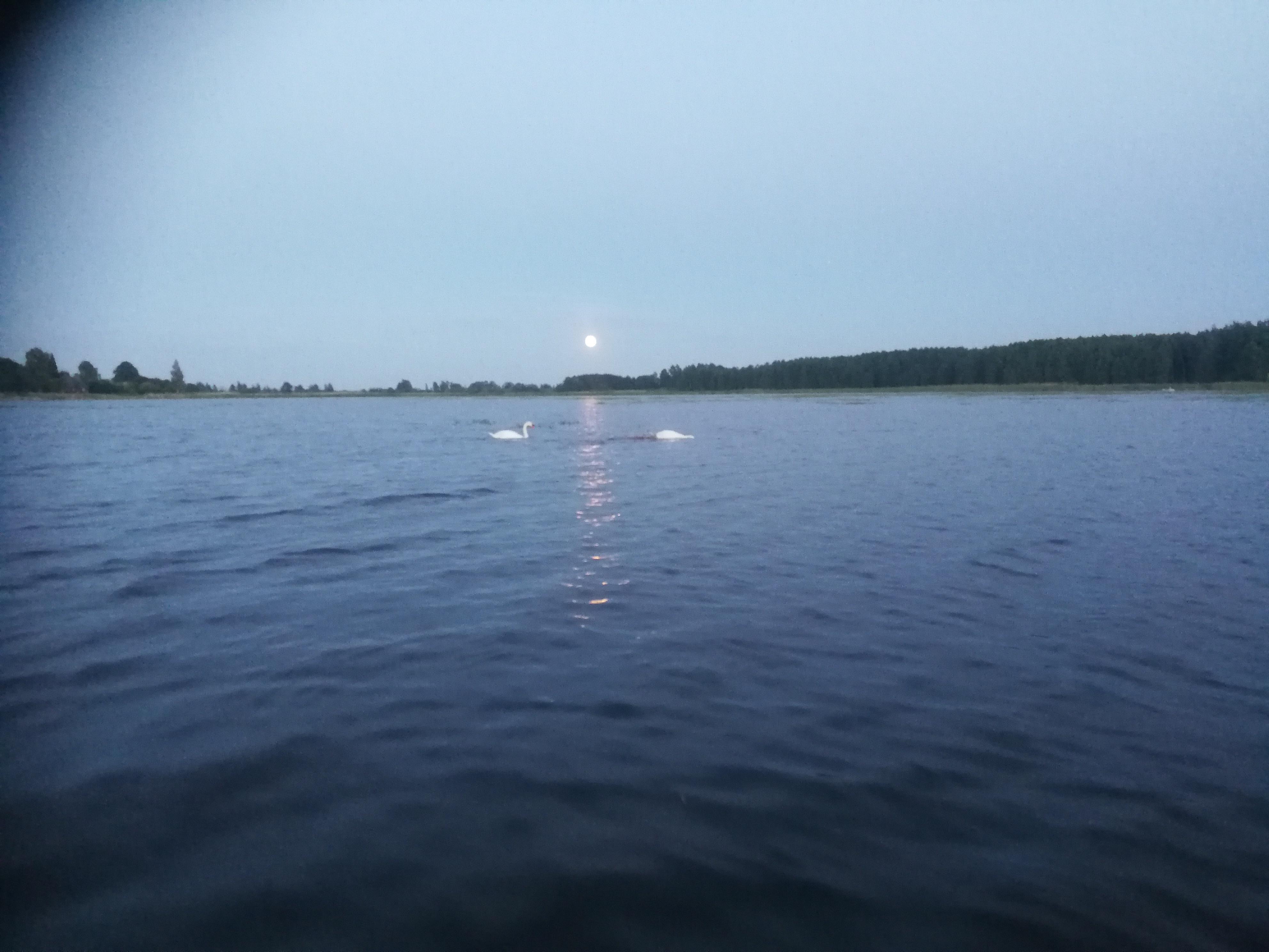 Вечер плавно перешёл в ночь, если это можно назвать ночью. Фонарём не пользовался.Белая ночь, полнолуние, лебеди: