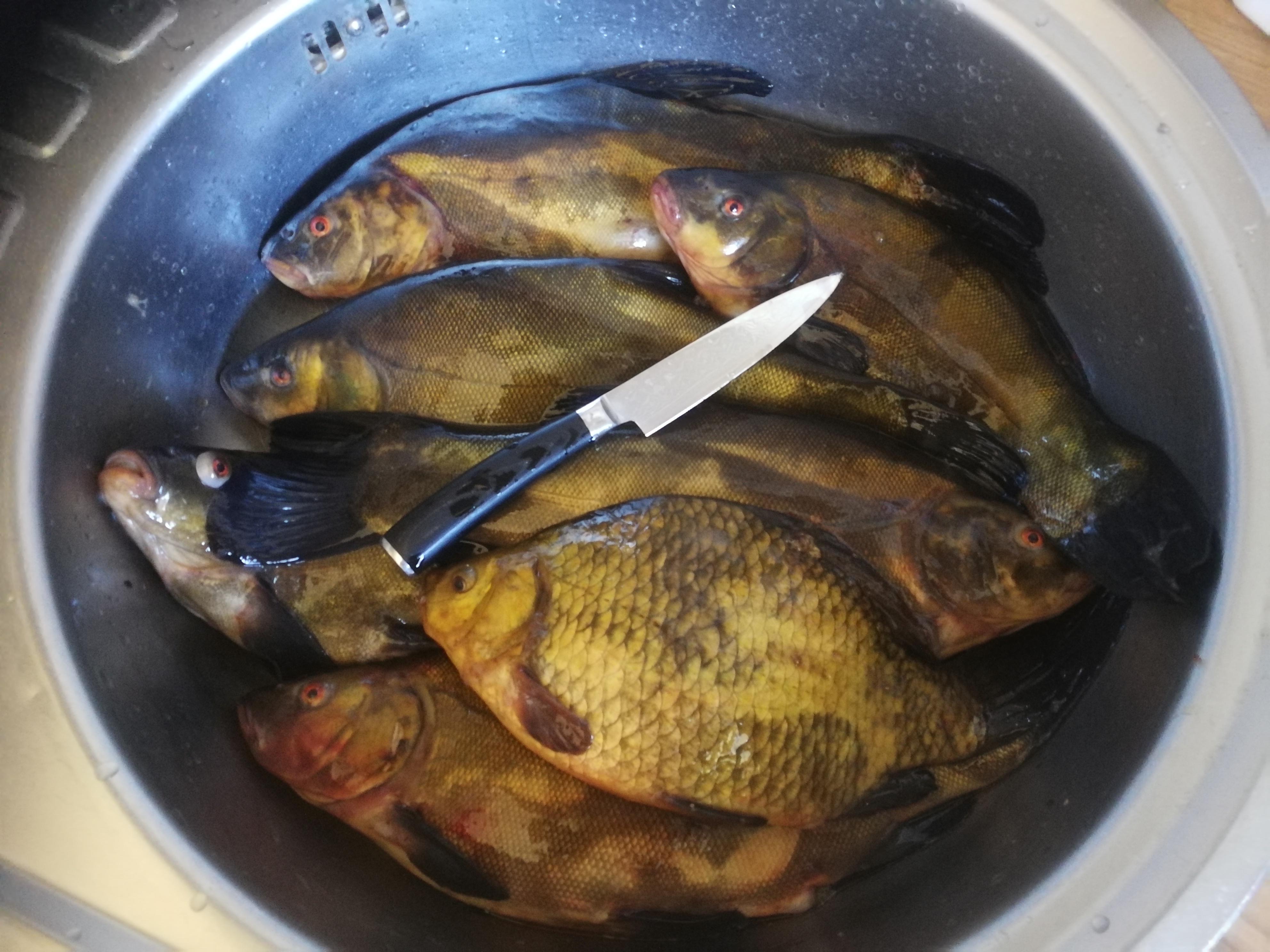 Ну и фото улова, извиняйте что в раковине, забыл садок в гараже, пришлось улов складывать сразу в холодильник и на берегу доставать рыбу для фотосессии было лень.