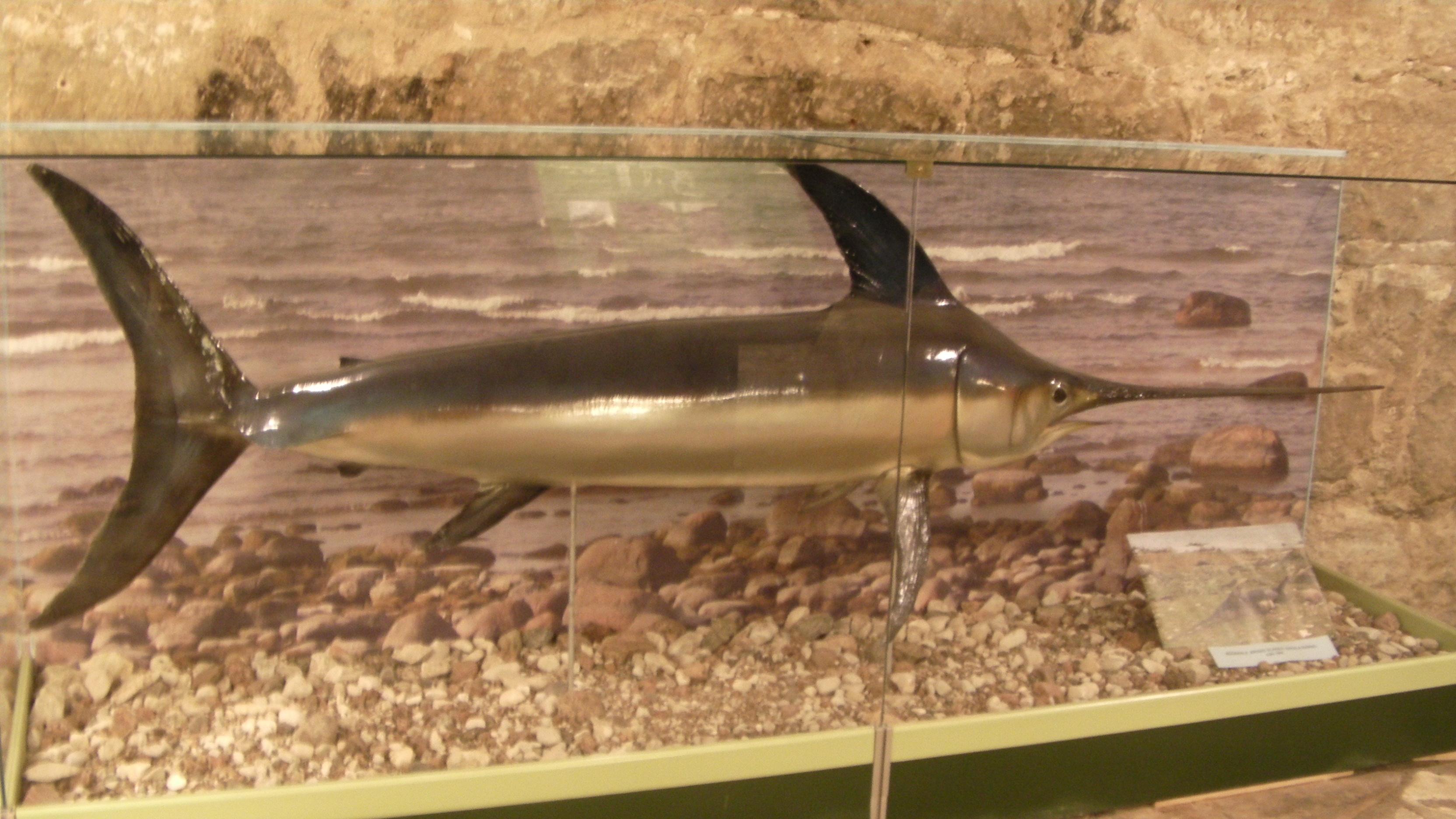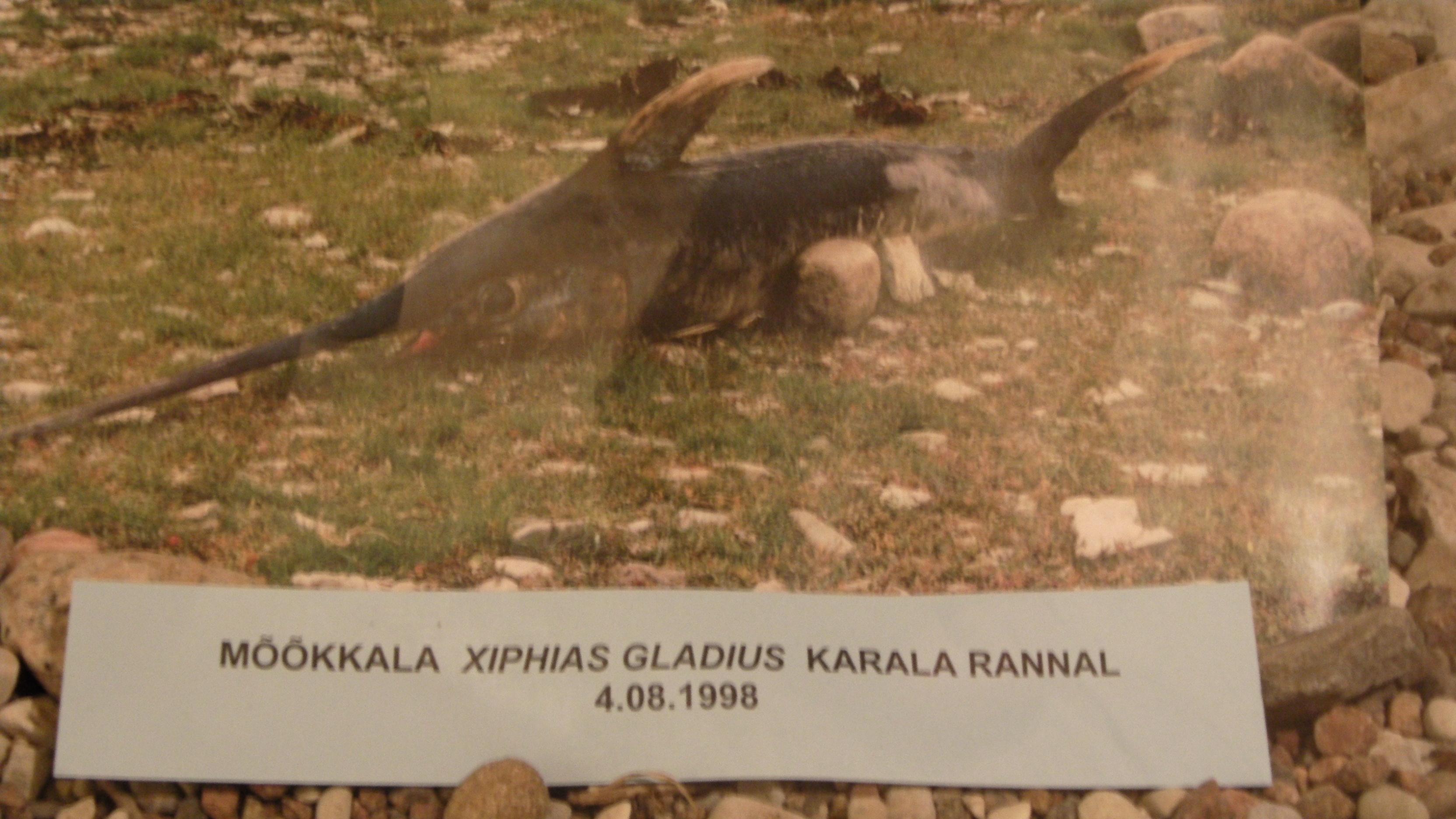Наш брат-любитель рыбалки, посещает Сааремаа в поисках щуки, саргана, окуня, язя, плотвы, угря, красненькой, камбалы и т.д. и т.п., но за сей рыбой ни кто не едет, да и в территориальных балтийских водах Эстонии ее ни кто еще не ловил. Но сей шикарный трофей рыболовный присутствует в Балтике, и его можно поймать. Доказательство такового присутствия можно обнаружить…..в замке Курессааре, куда его сдал рыбак (остался рыбак без рыбы, зато музей с экспонатом😁). И так речь идет о :