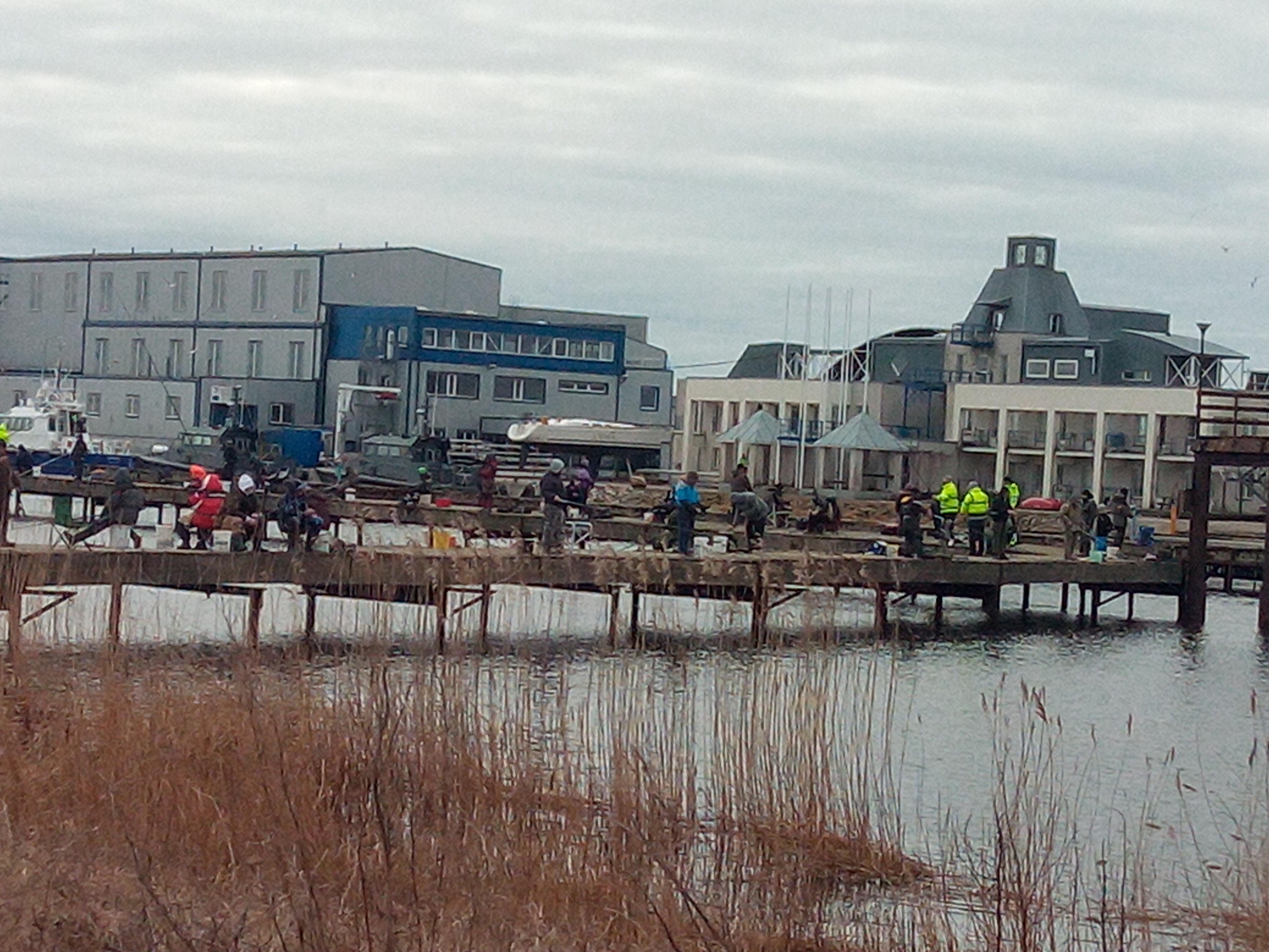 Что делается на мостках не знаю, так как там устоять при таком ветре невозможно.