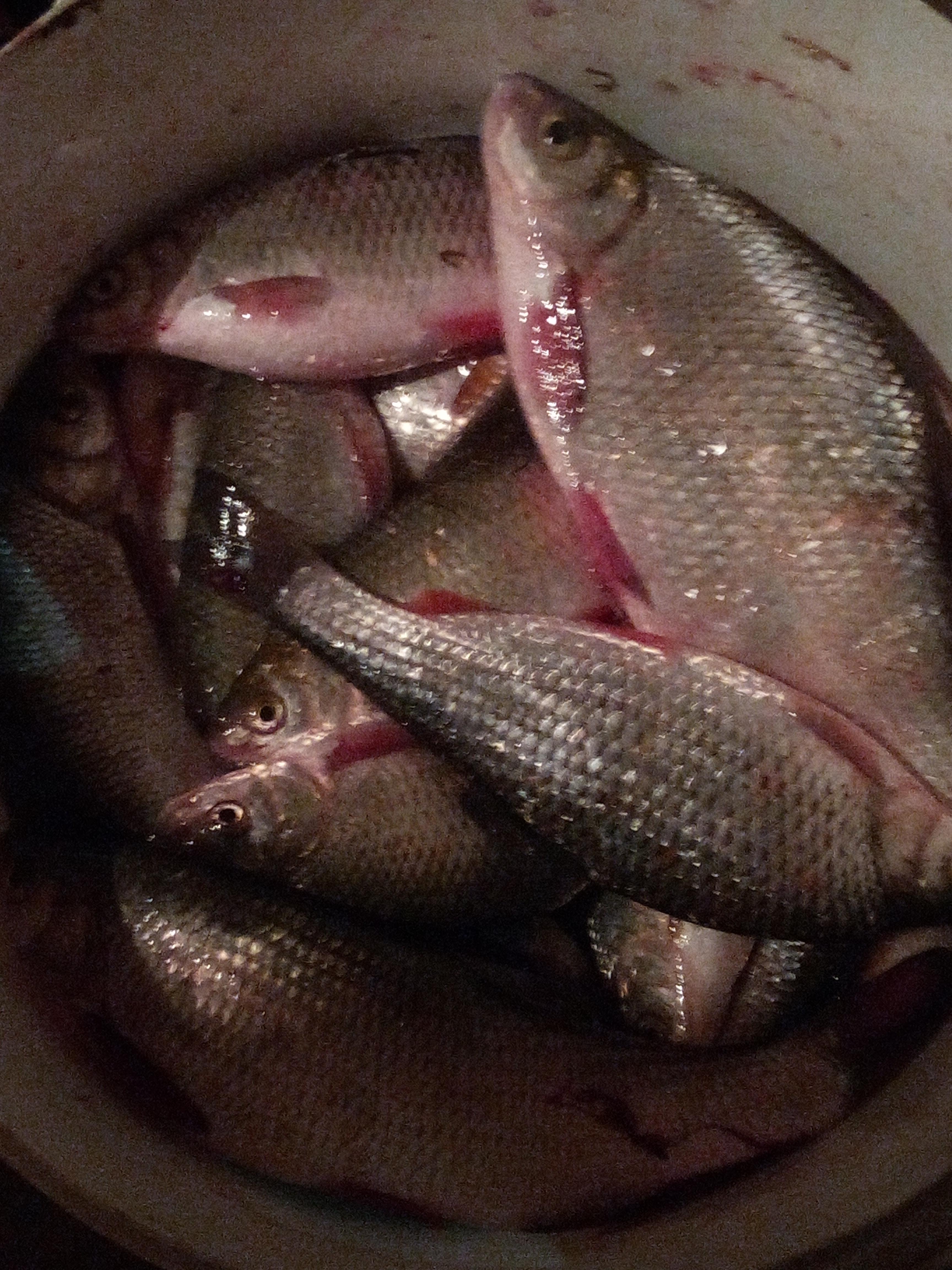 Всё та же уклейка и мелкая плотва. С утра и до 4ёх с трудом наковырял 4-5кил более-менее сушибильного размера.