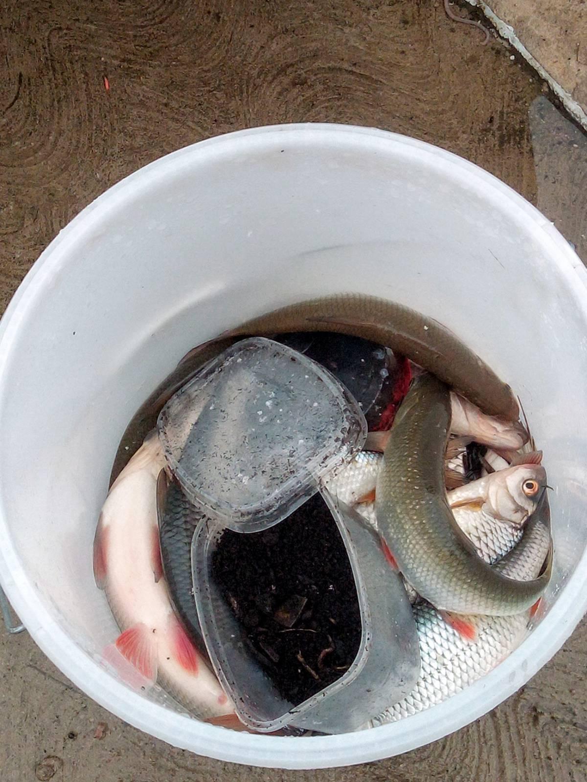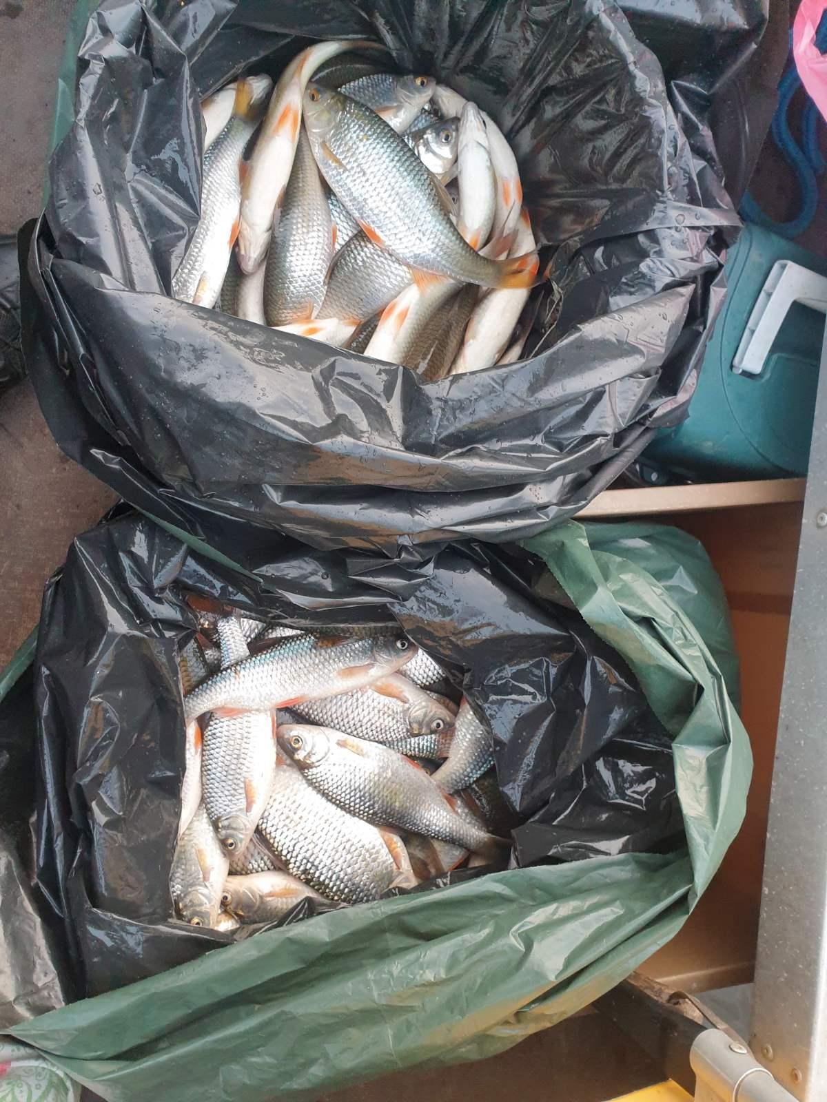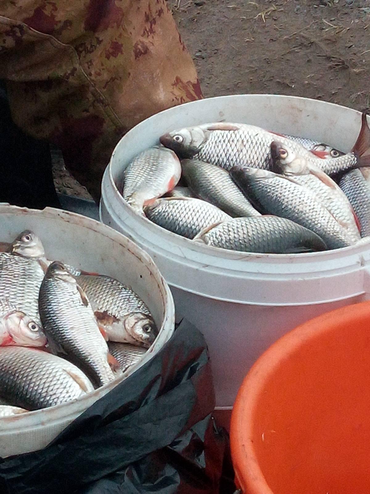 Целью было не НАЛОВИТЬ три мешка, а ПОЛОВИТЬ рыбу всей семьёй и доставить радость сыновьям и супруге. Поэтому улов скромный: на четверых (Отец, жена и двое шестилетних сыновей близняшек ) было забрано с собой лишь 25 кг.