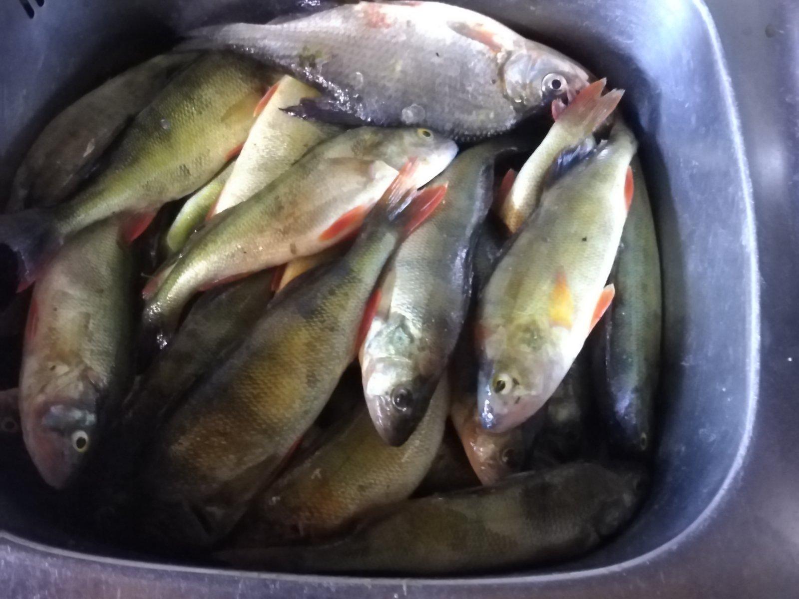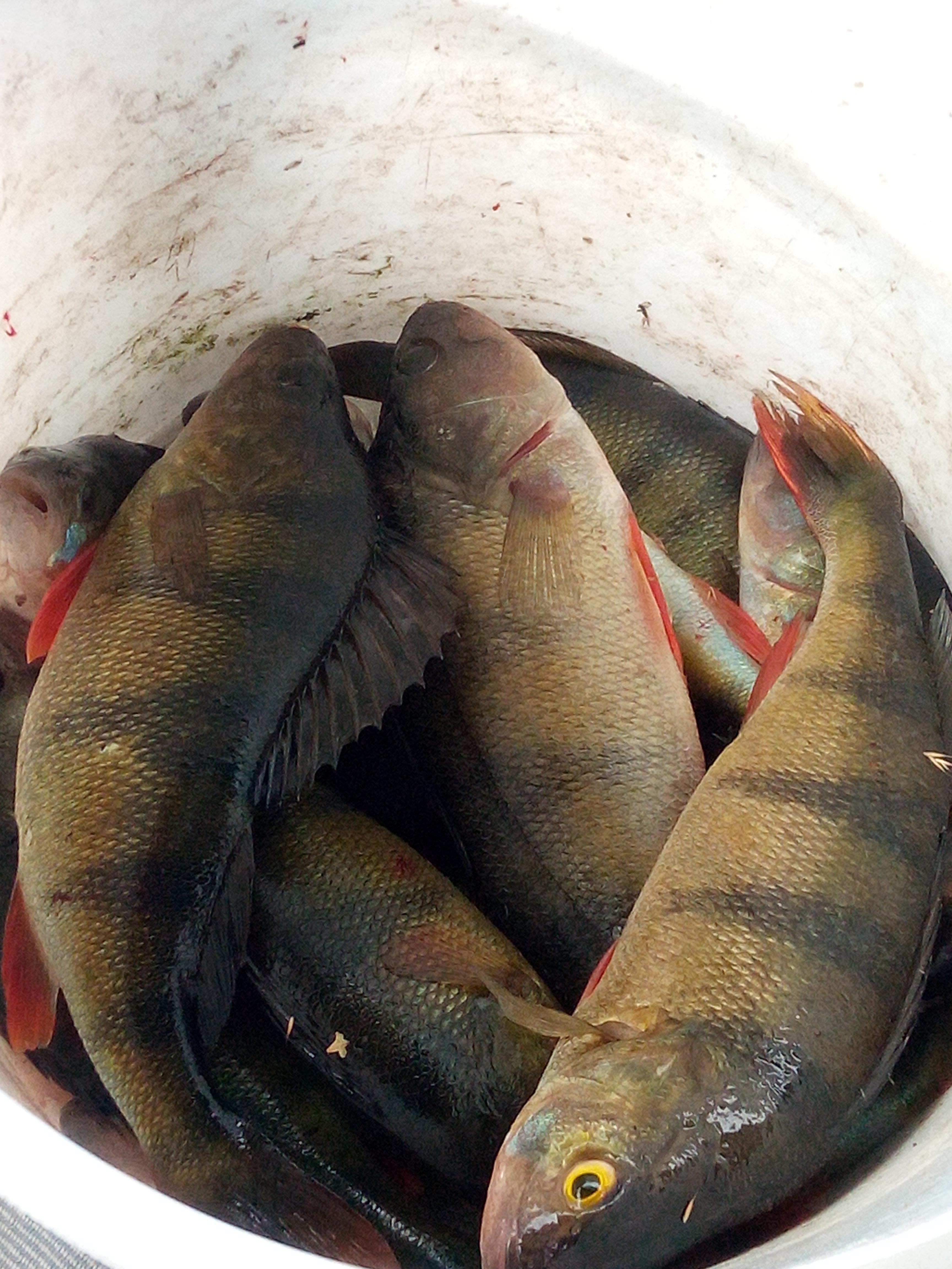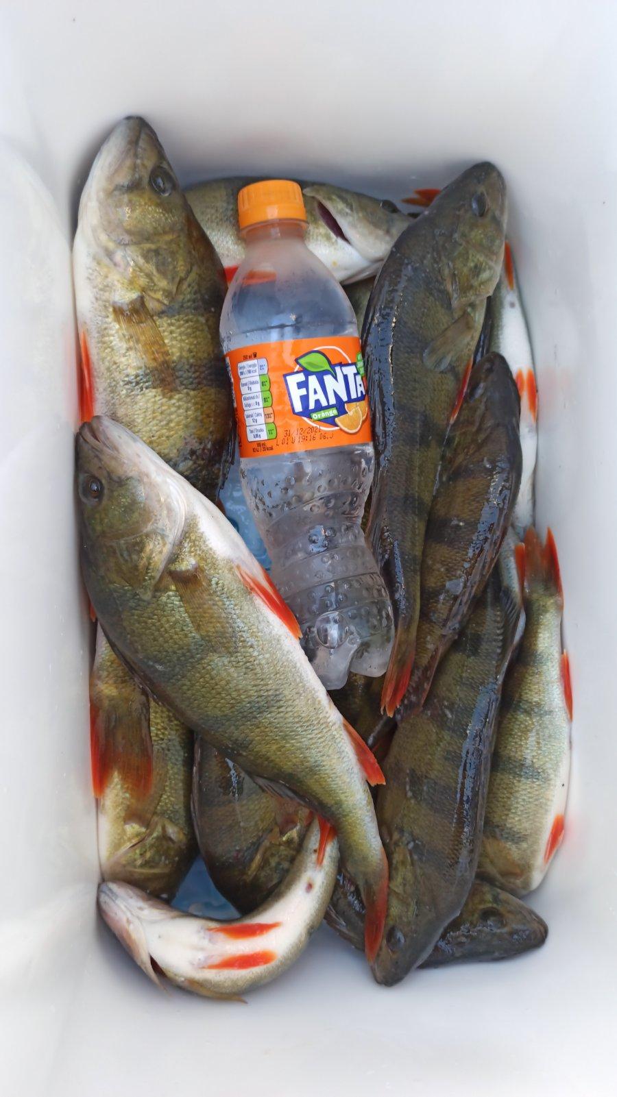 Были там с Любой всего 3 часа. За это время 45 хороших окуней взяли, в раза 3-4 больше отпустили.