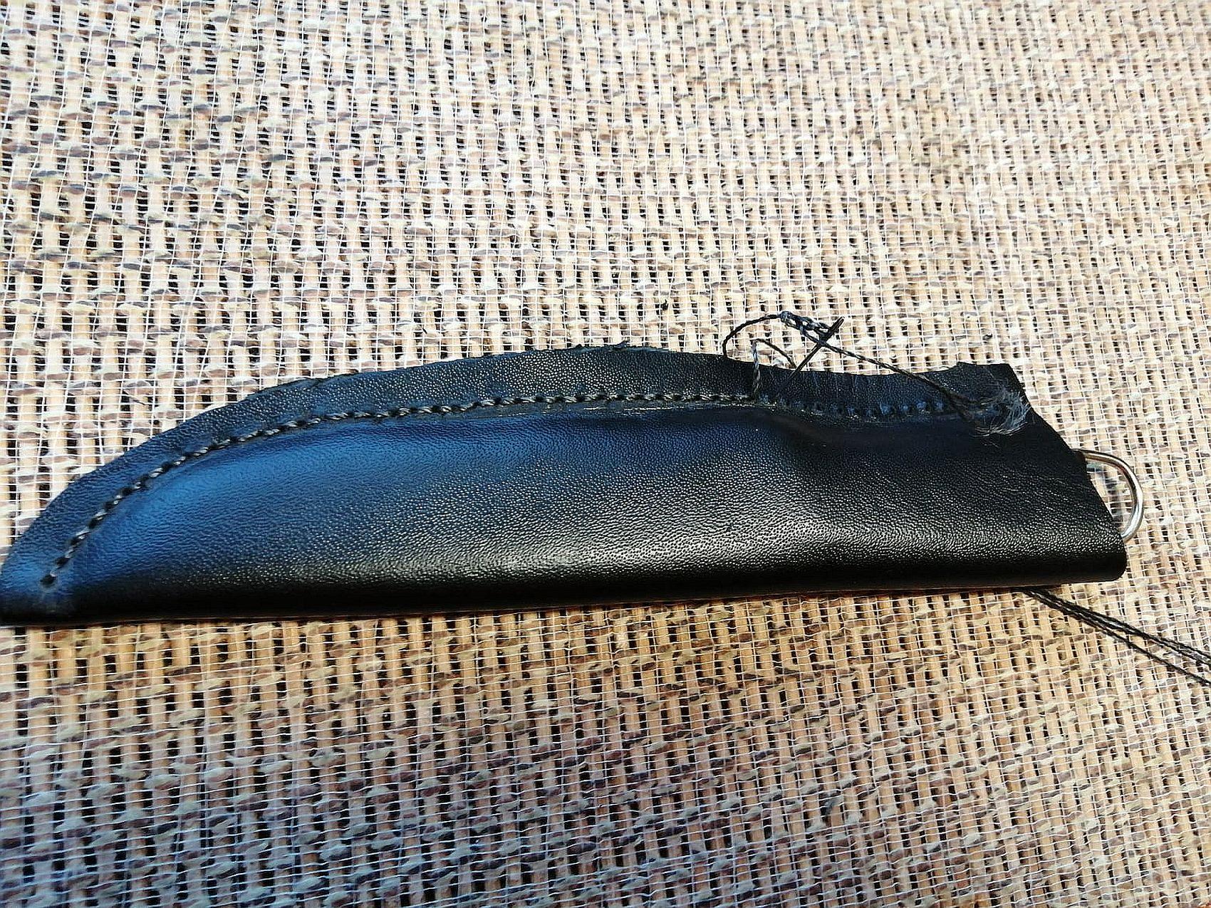 Люблю красивые вещи, но всё же главное — функционал (как и в зимних блёснах, которые я делаю). Поэтому без лишней педантичности, но достаточно качественно, и пошил я такой чехолчик. Нож обрёл свой «домик». Жалко мне стало этого бездомного сиротинушку…