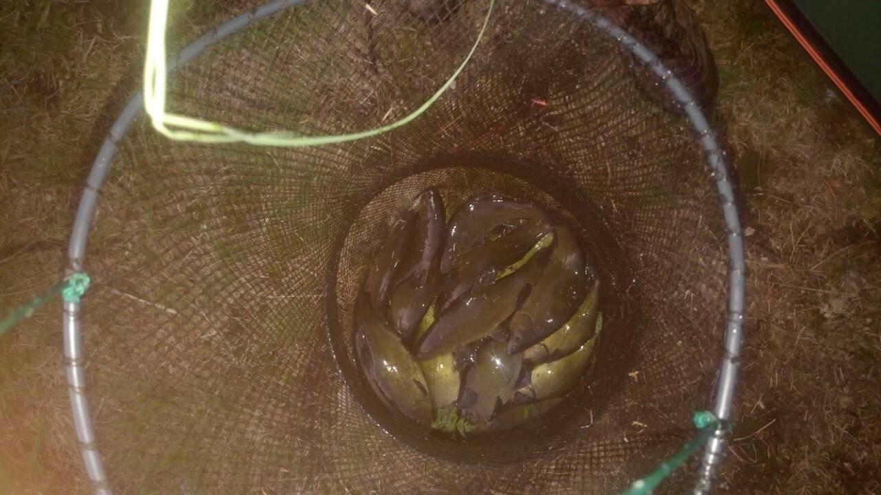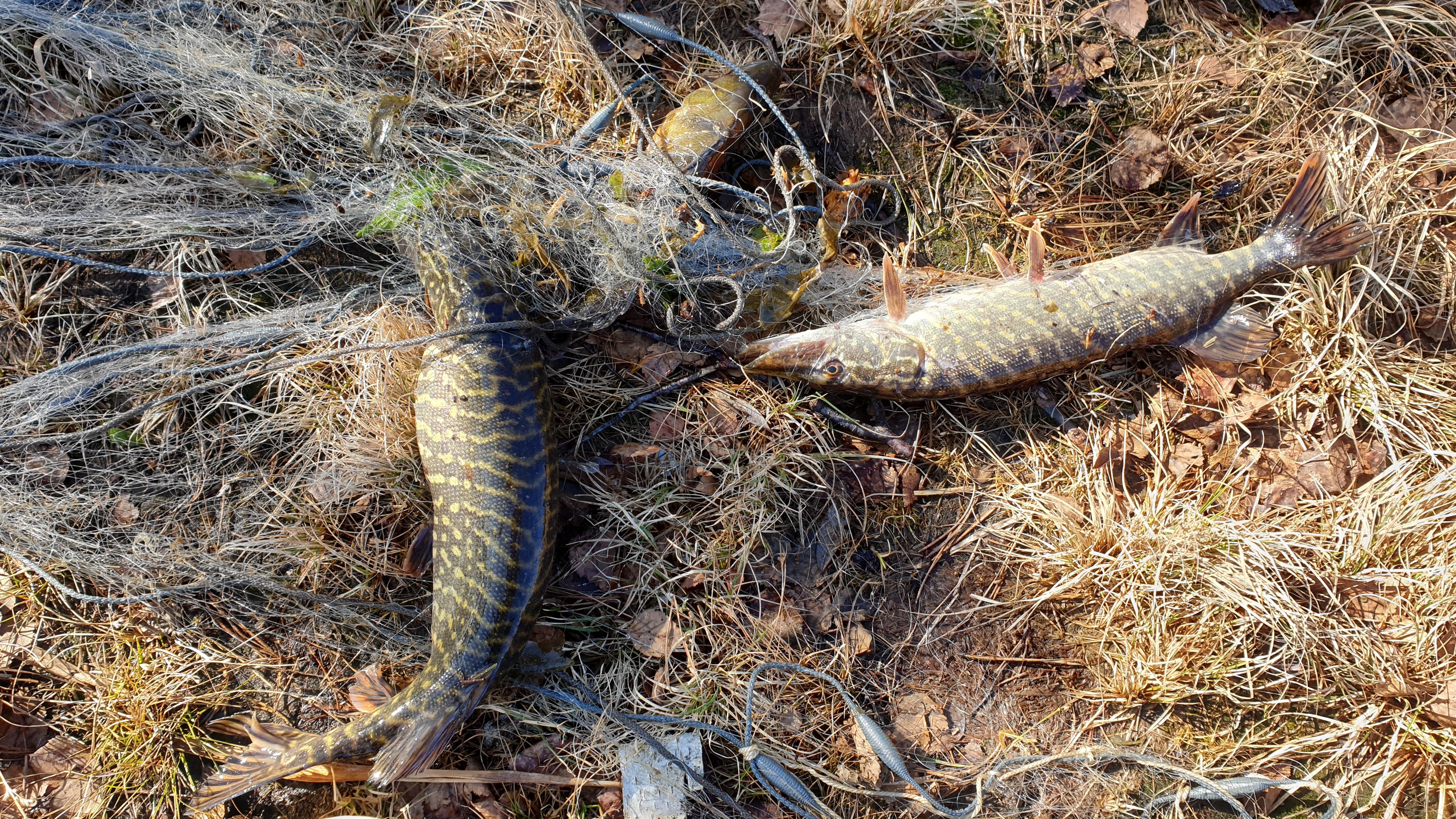 2 пузатые щуки и 3 окуня. Все с икрой. Рыба отпущена нереститься, сетку спалил на костре.Такие вот дела…