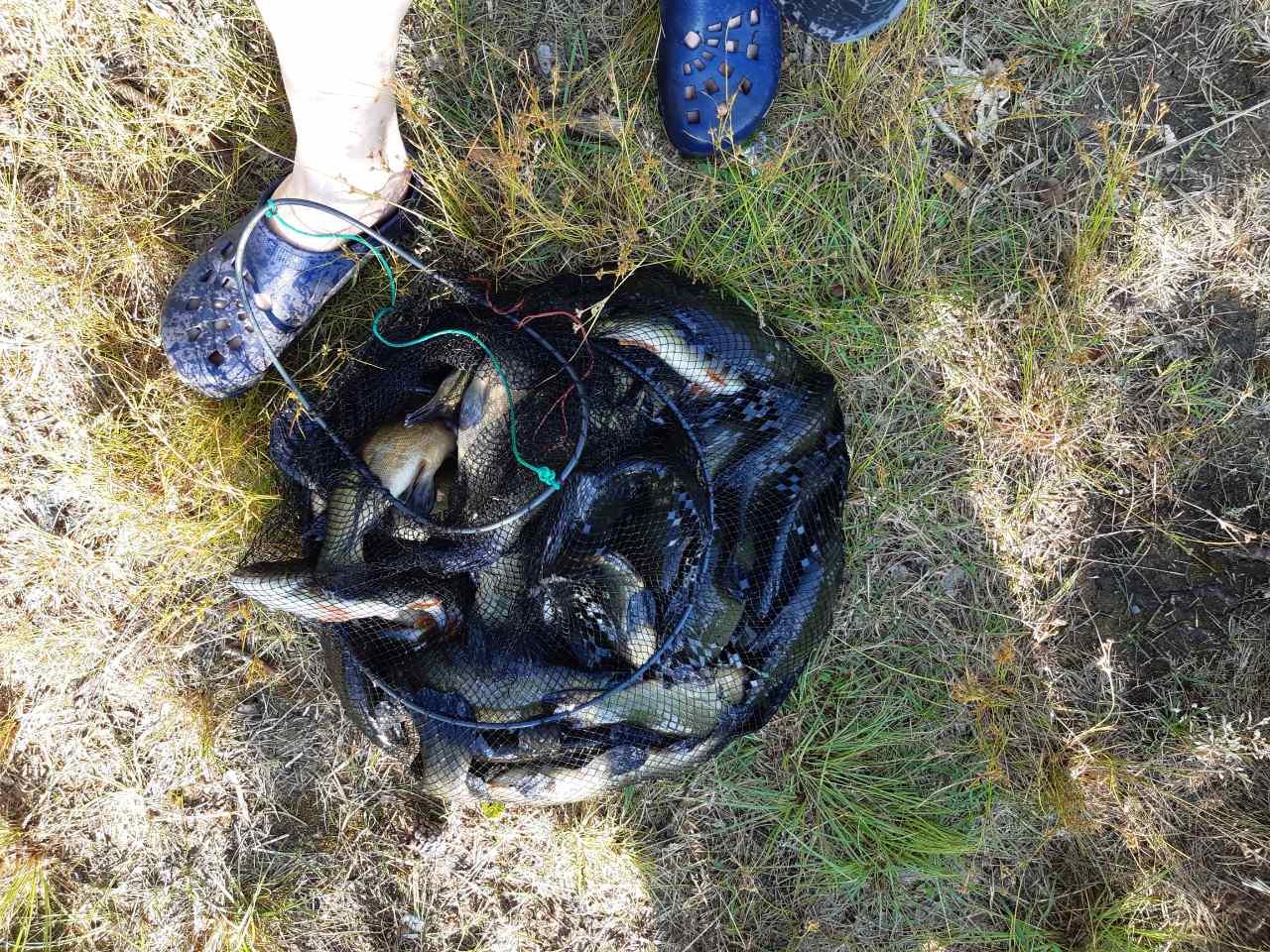 Рыбы столько, что складывать некуда, поэтому с 7ми утра приятель занимается селекцией: после очередного пойманного линя вылавливает из садка того, кто поменьше и выпускает.