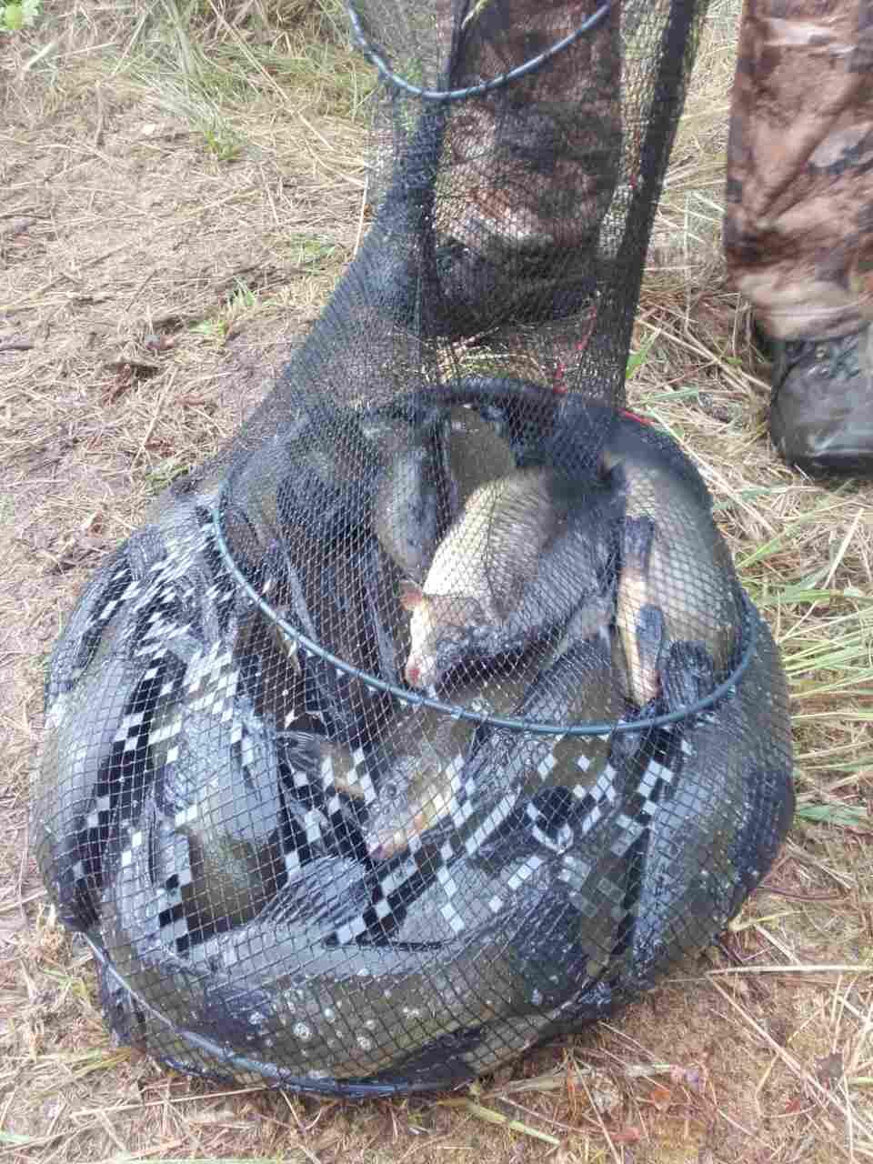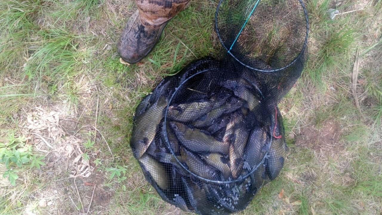 Рыбы столько, что складывать некуда, поэтому с 7ми утра приятель занимается селекцией: после очередного пойманного линя вылавливает из садка того, кто поменьше и выпускает.