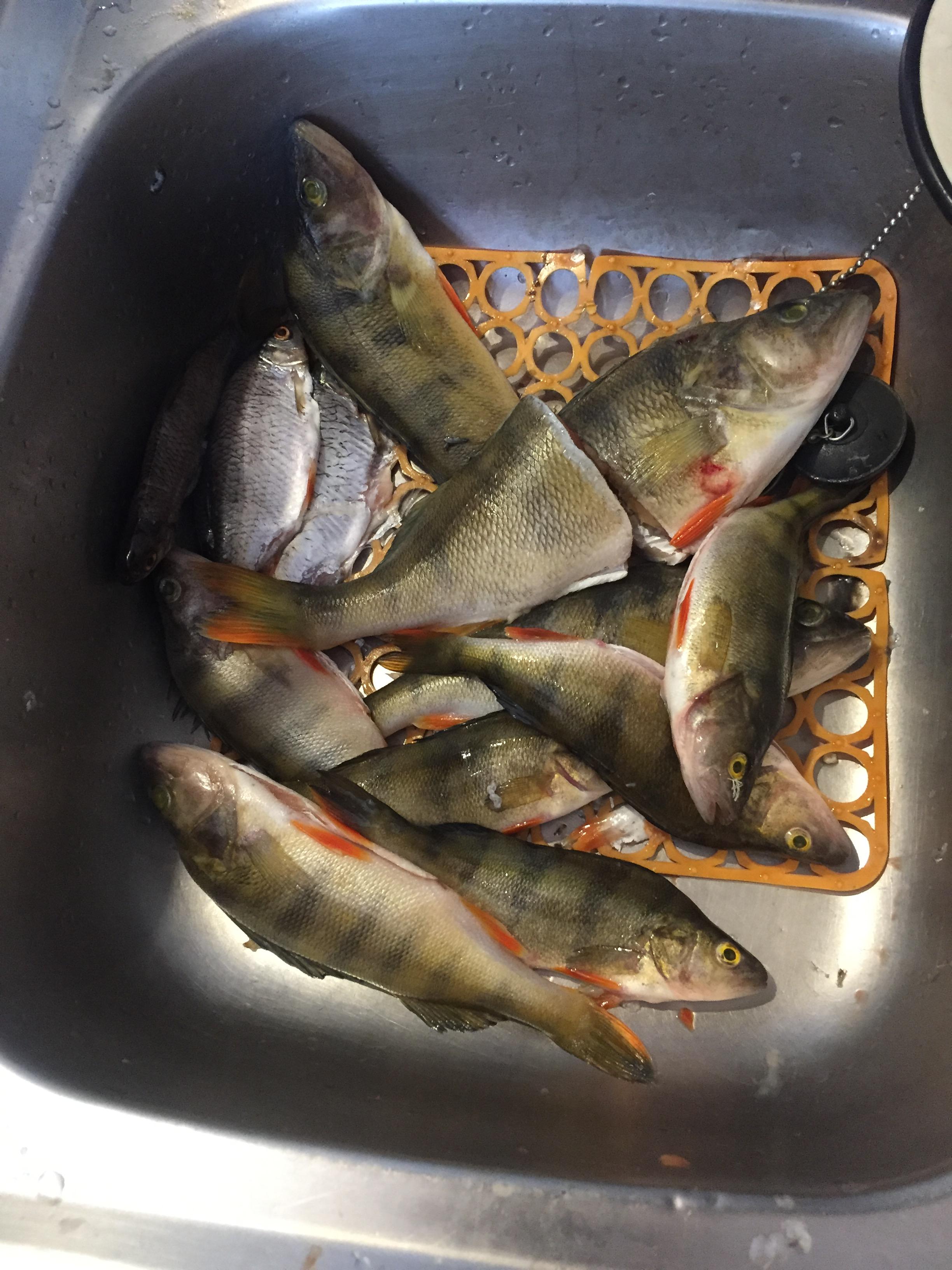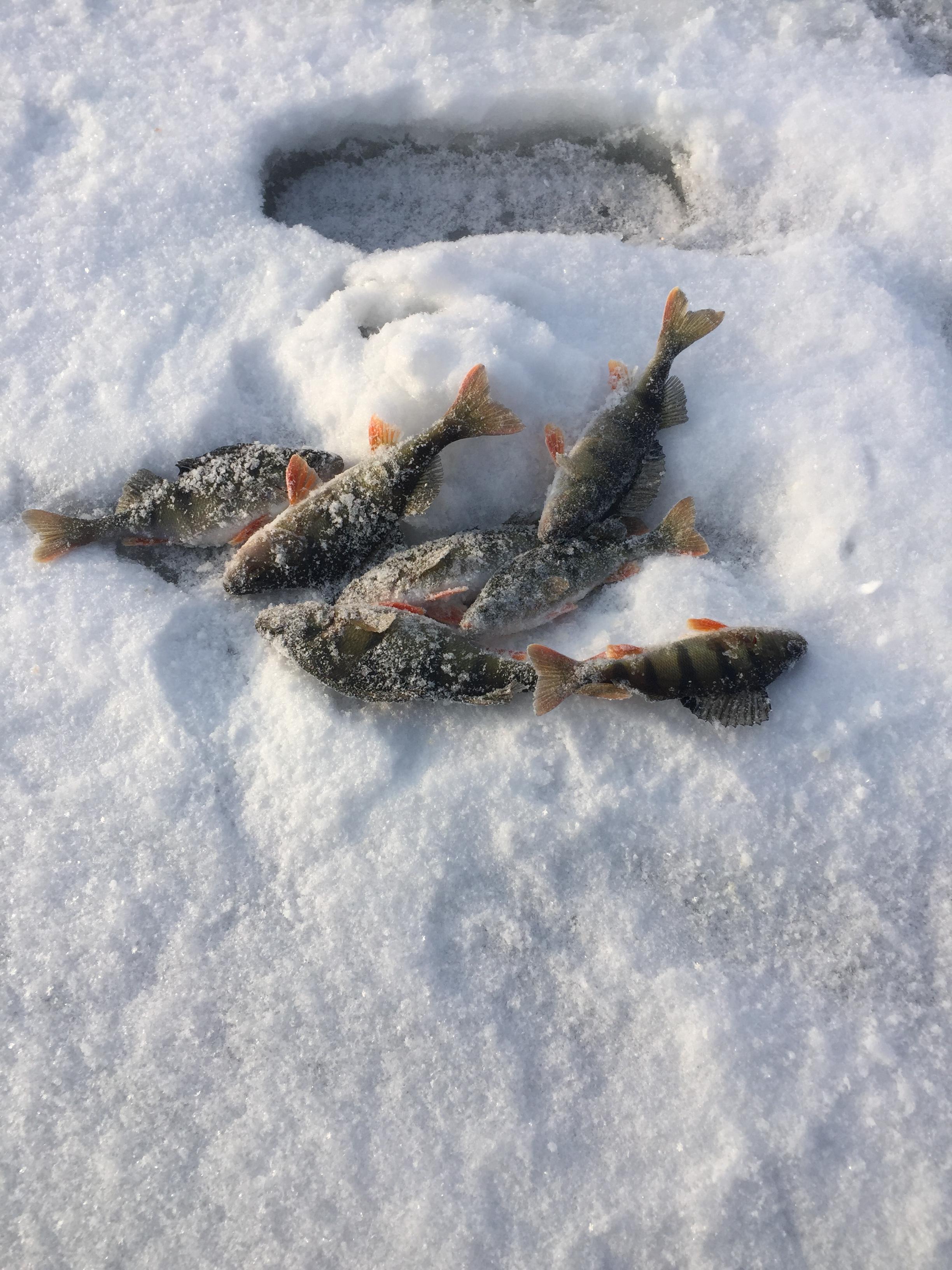 ohotnik545УчастникВоскресенье оказалось тоже свободным и вот я вновь на озере,но уже на «своих»лунках и о чудо окунь отозвался практически с первых взмахов.Ловить долго не дали(надо было идти ух варить),но всё же что-то успел поймать.Правда фото делал уже дома и уже потрошенного.(отец успел выпотрошить пока я переодевался)