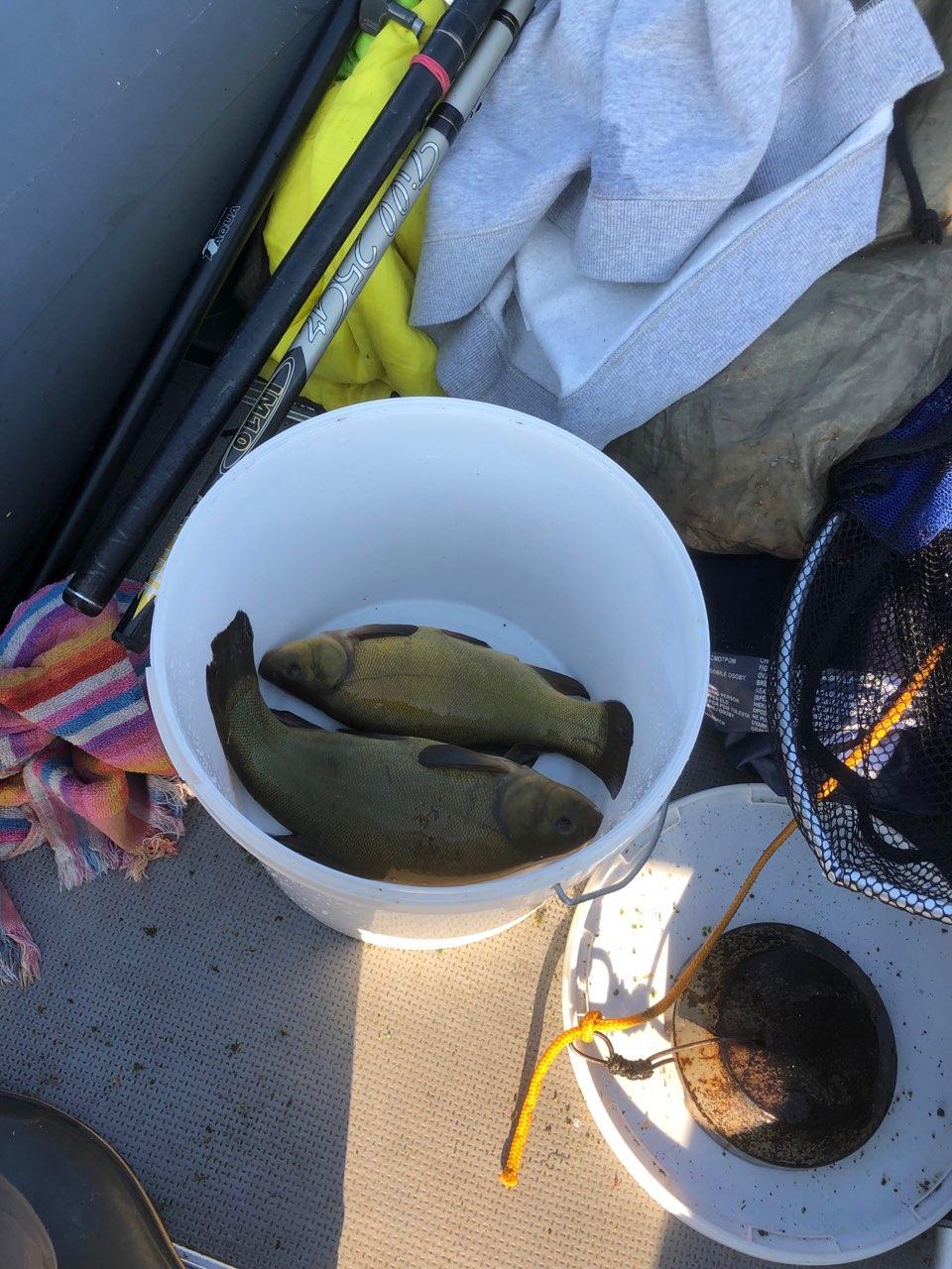 В итоге 8 зачётных линей, 10 плотвин за 4 часа. Линь брал только на червя, с полной кормушкой. Ловил с 5 утра до 9. Дальше клёв выключили… (31-е августа, 2019)