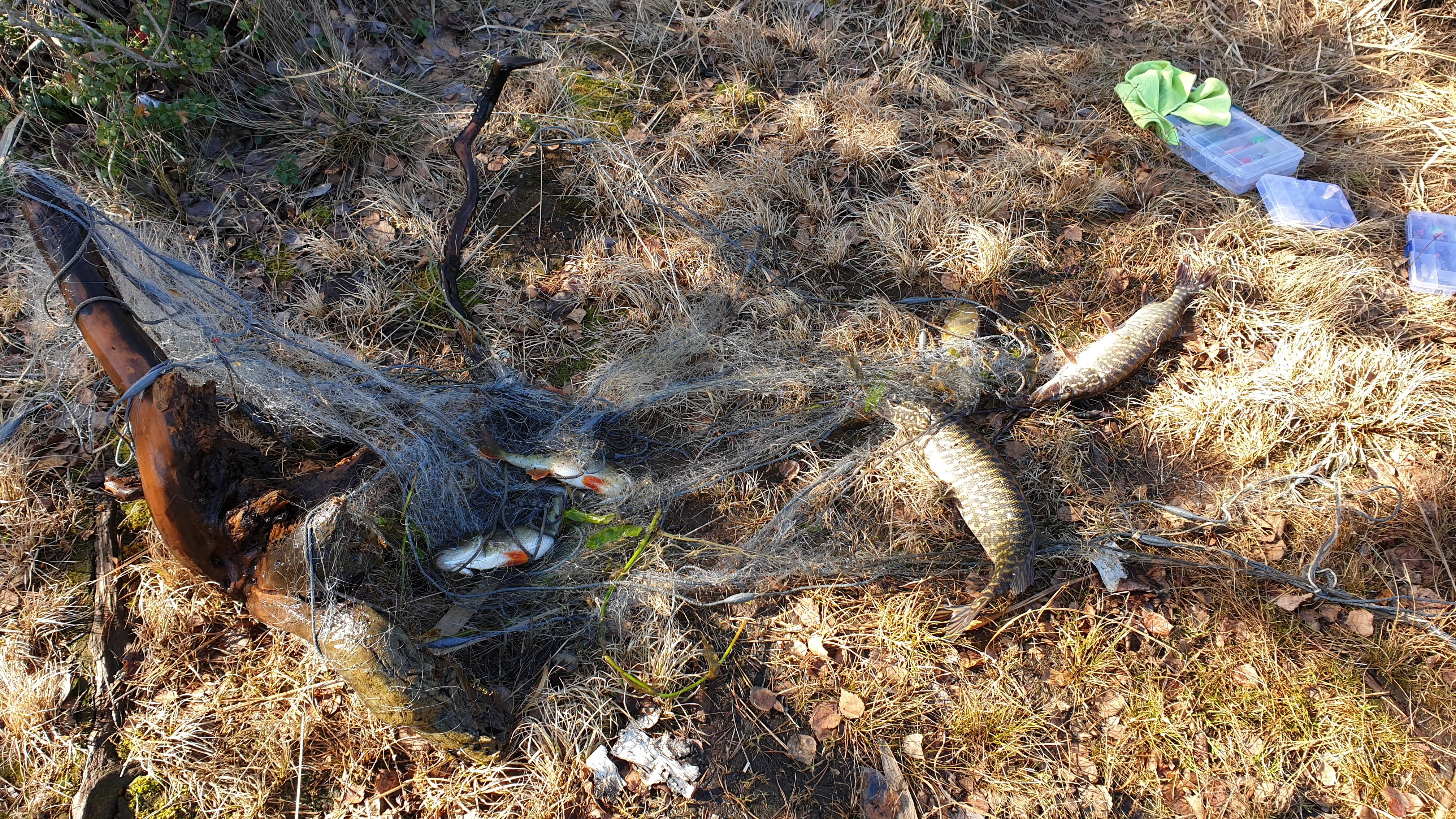 Позвонил рыбнадзору. Сказали сетку из воды не вынимать.